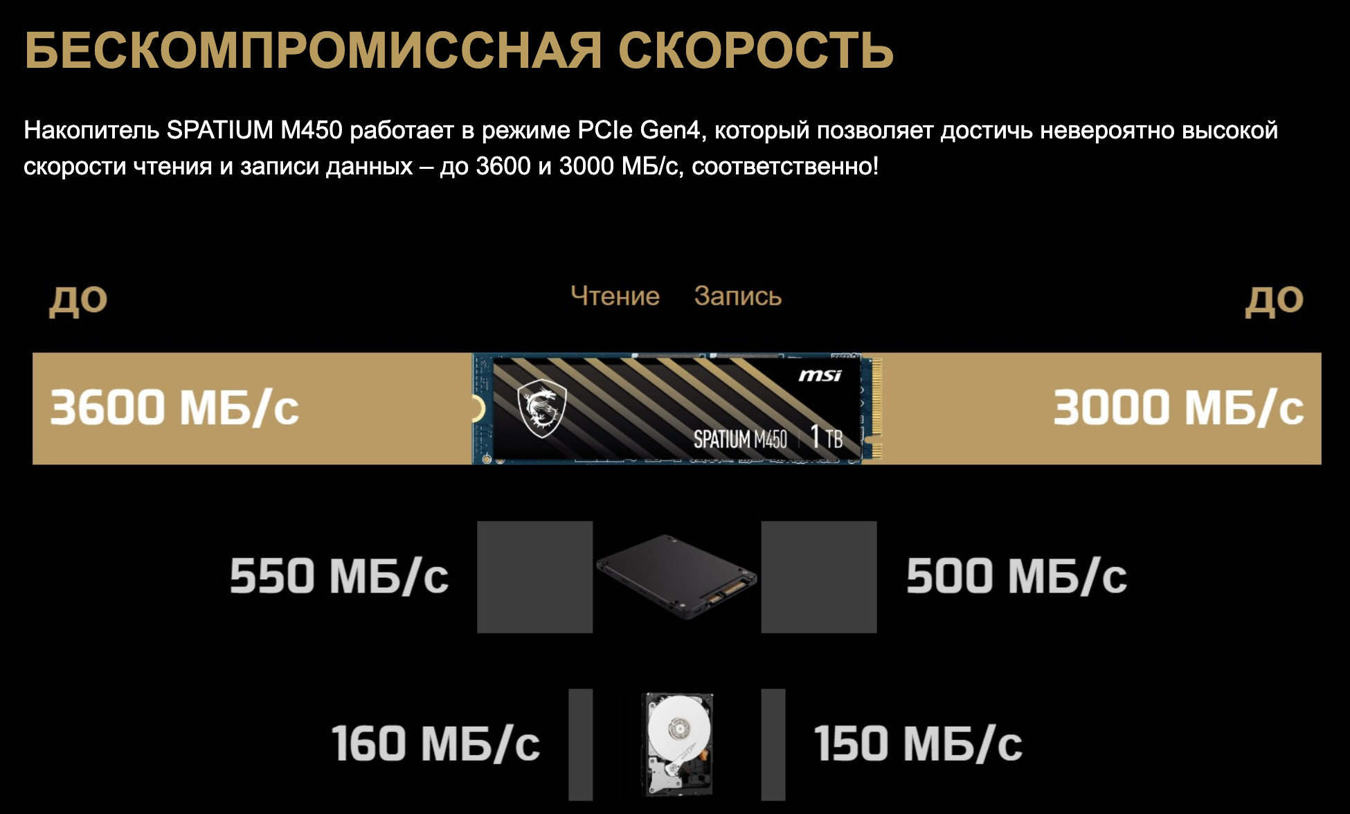 Характеристики Накопитель SSD MSI Spatium M450 500Gb M.2 PCIe 4.0 (S78-440K220-P83)