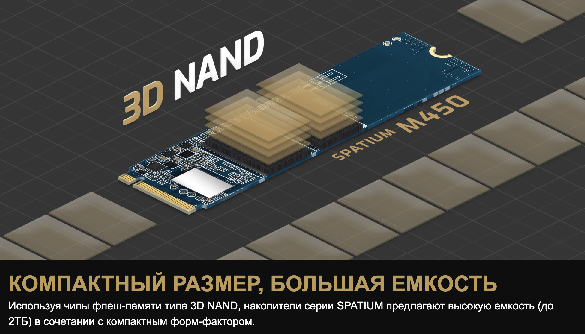 • Емкость от 250ГБ до 2ТБ, форм-фактор M.2 2280