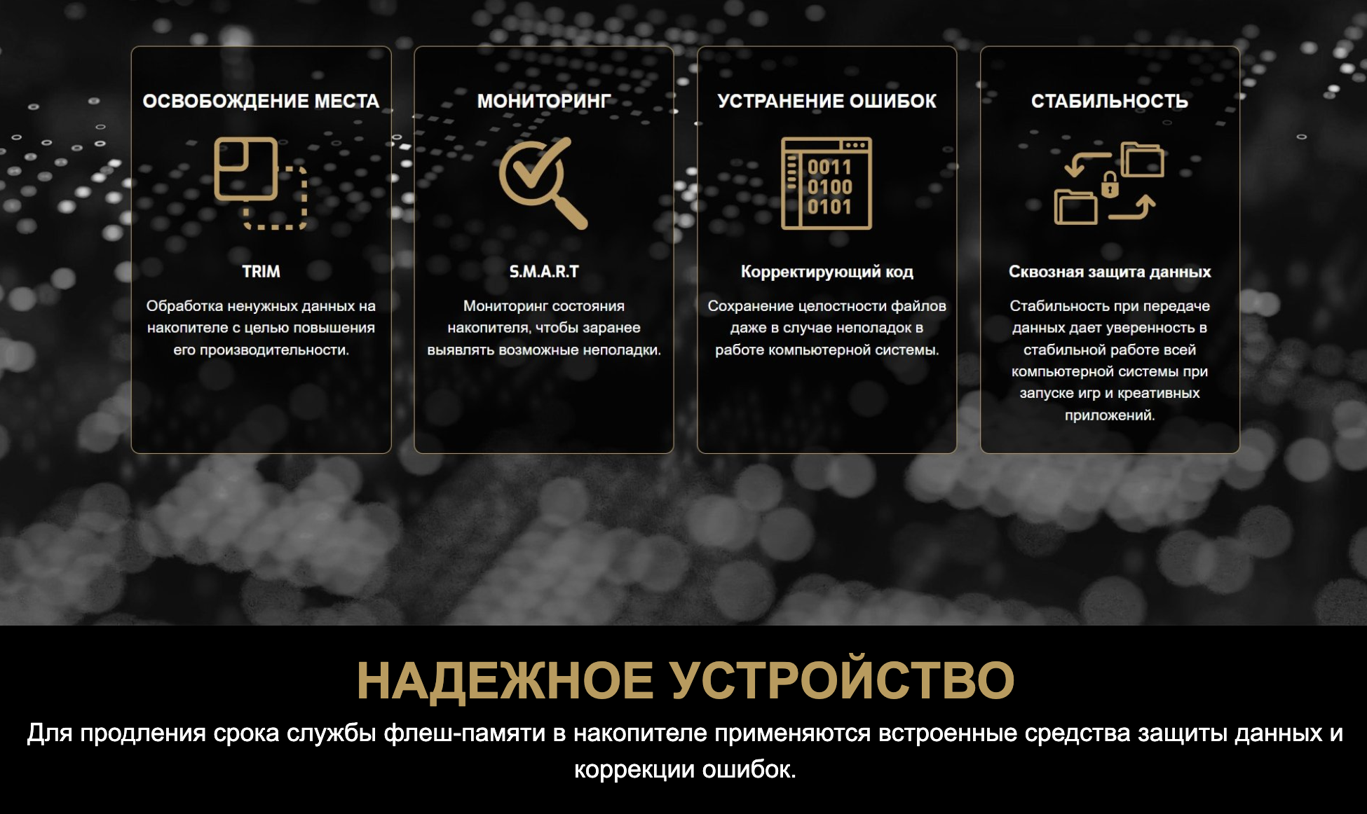• Интерфейс PCIe Gen4 x4, соответствие стандарту NVMe 1.4
