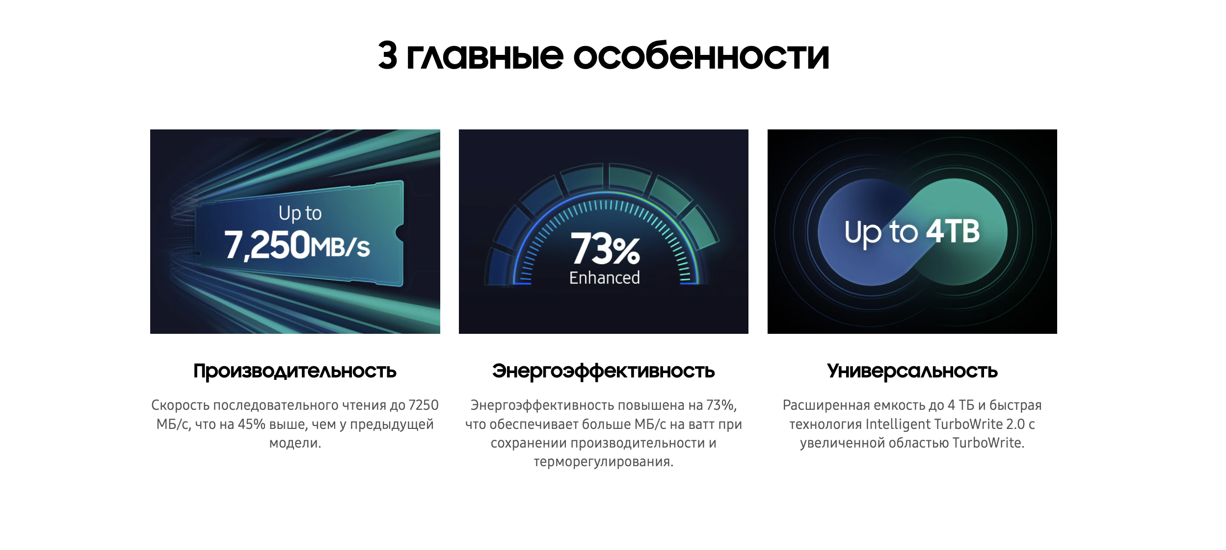 БрендSamsung Тип жесткого дискаSSD Объем накопителя1024 Гб Скорость чтения SSD7150 МБ/с Скорость записи SSD6300 МБ/с