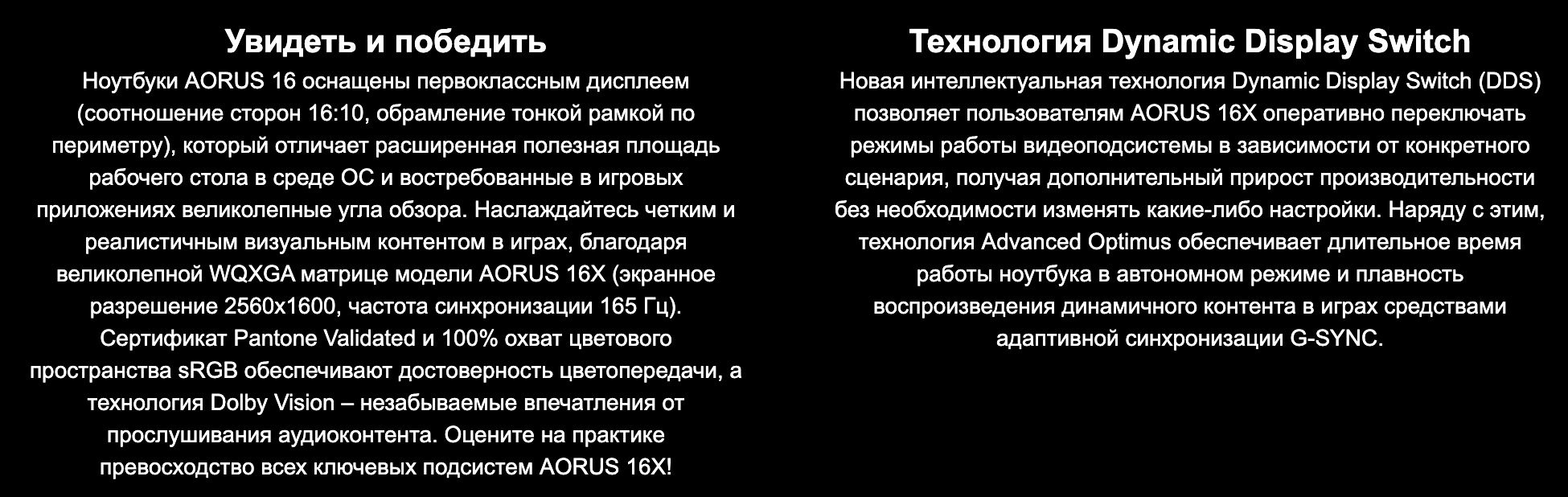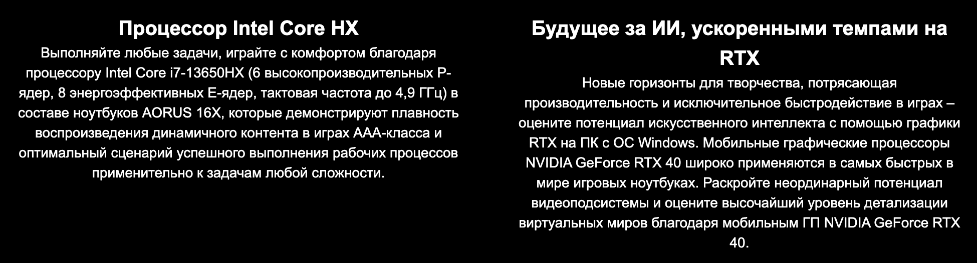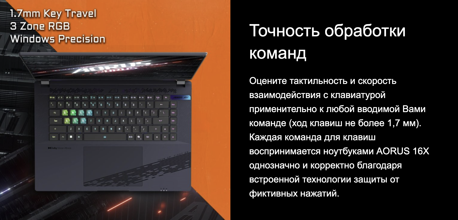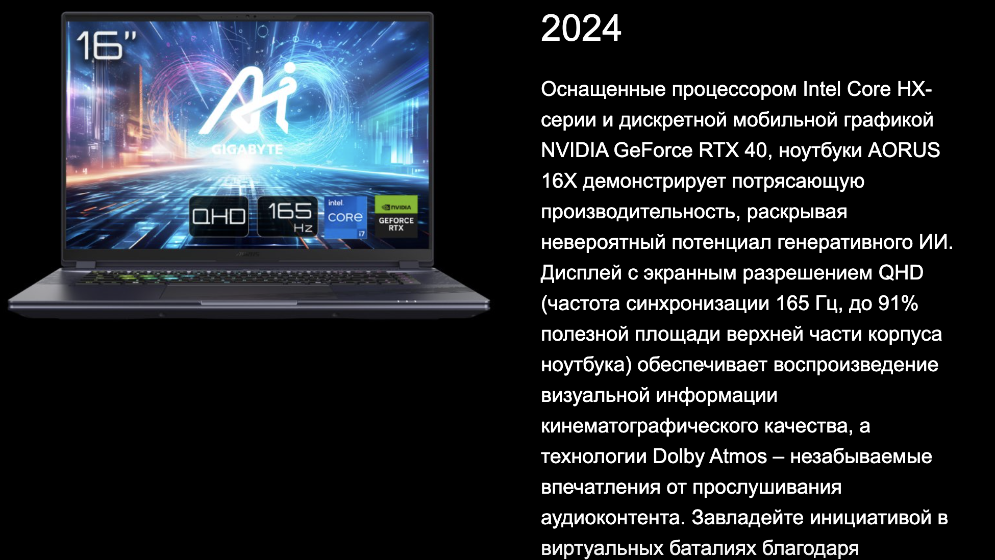 Характеристики Ноутбук Gigabyte Aorus 16X 16" Intel Core i7 13650HX 16Gb SSD1Tb (9KG-43KZC54SD)