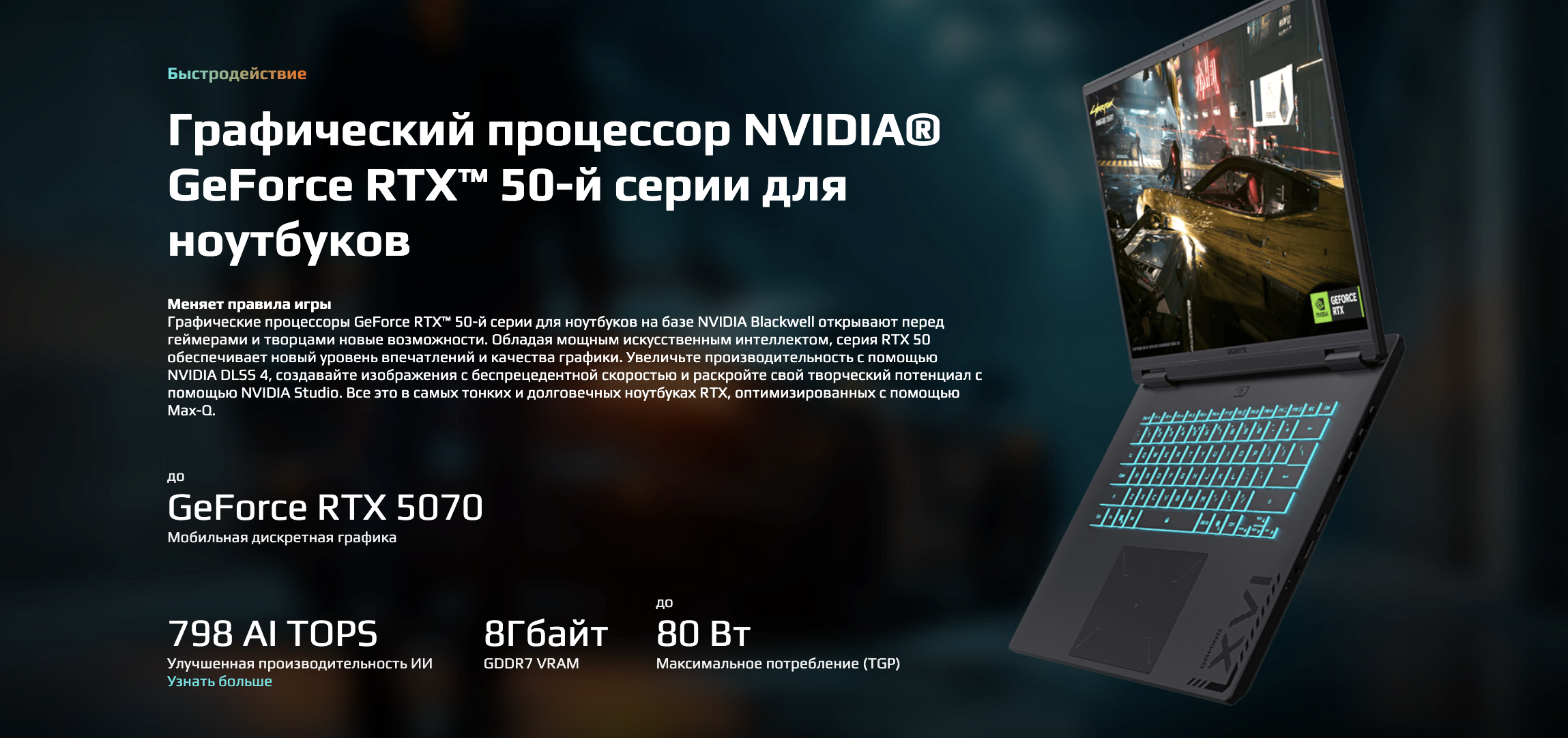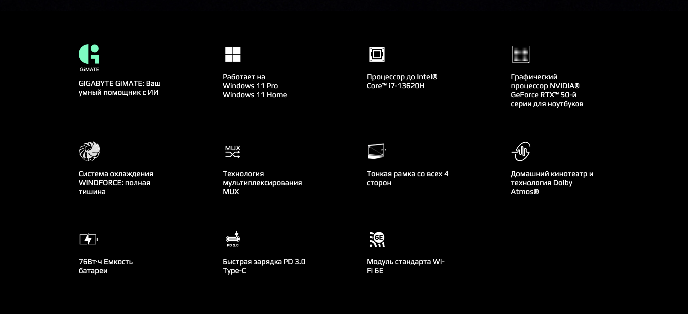 БрендGigabyte Диагональ экрана16.0 " Тип матрицы ноутбукаIPS Разрешение экрана1920x1200 Модель процессораRyzen 7 260 Модель видеокартыGeForce RTX 5070 Объем оперативной памяти32 Гб