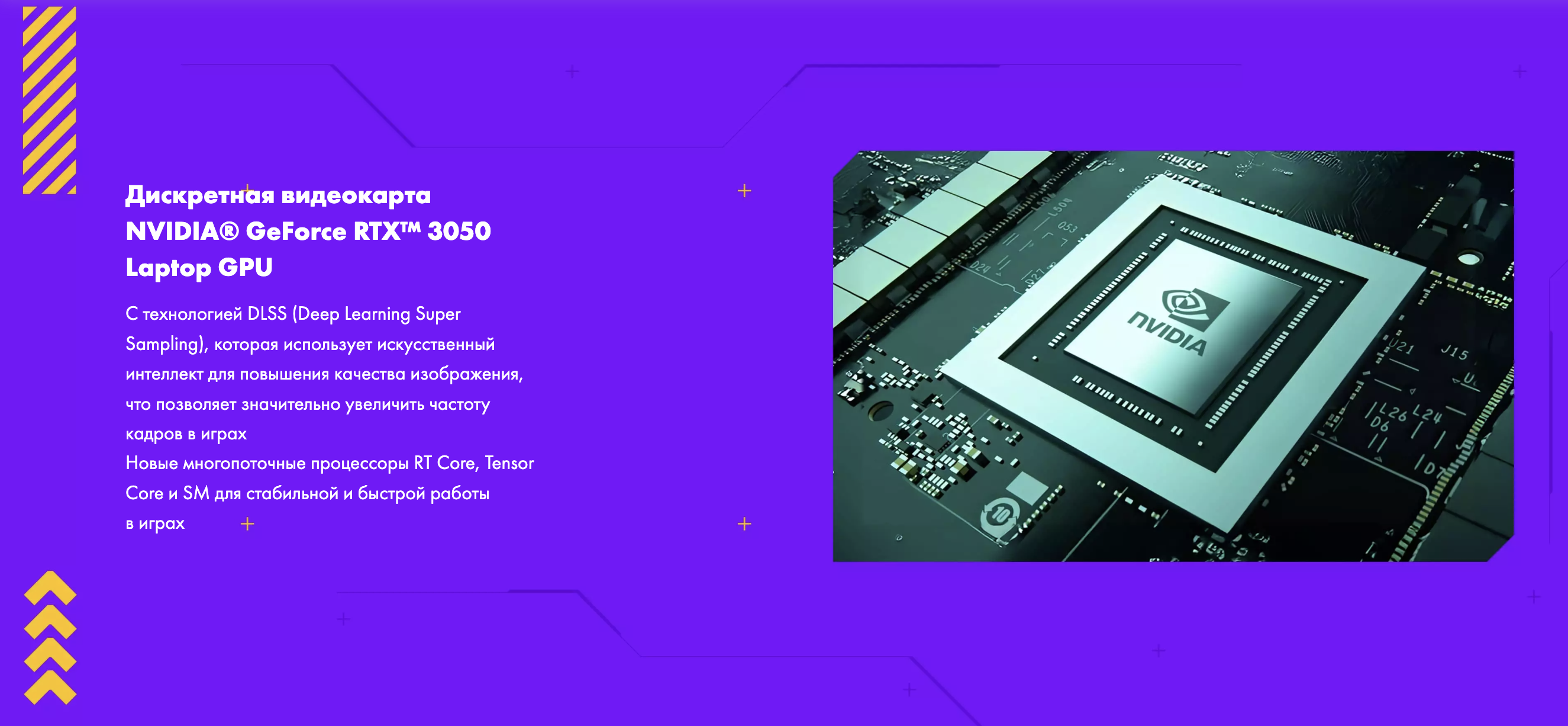 Игровой ноутбук S15 Quazar c видеокартой RTX 3050 4GB, которая поддерживает технологии DLSS и рейтрейсинга для увеличенной производительности во всех сценариях работы и игры. Получите ещё больше FPS без потери качества, ведь кадры решают всё.