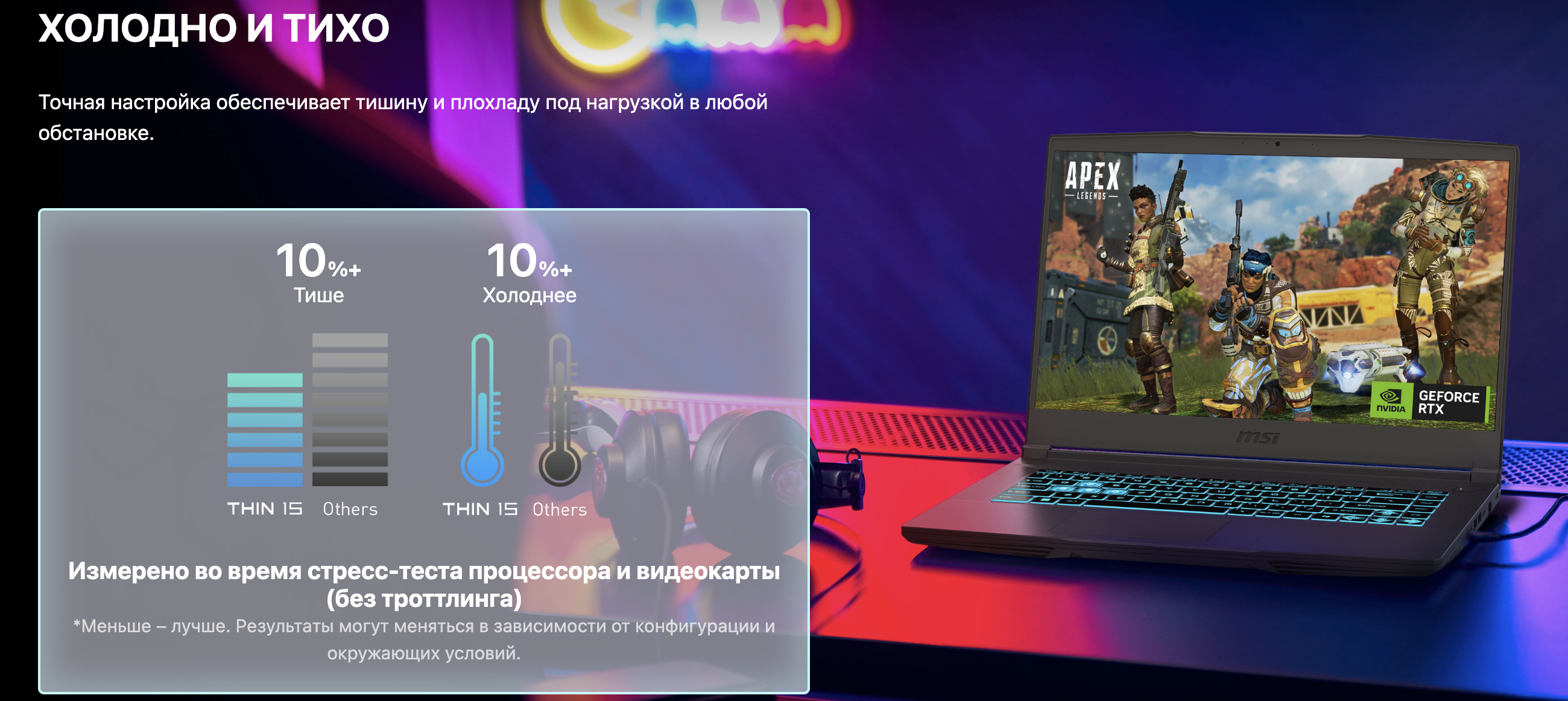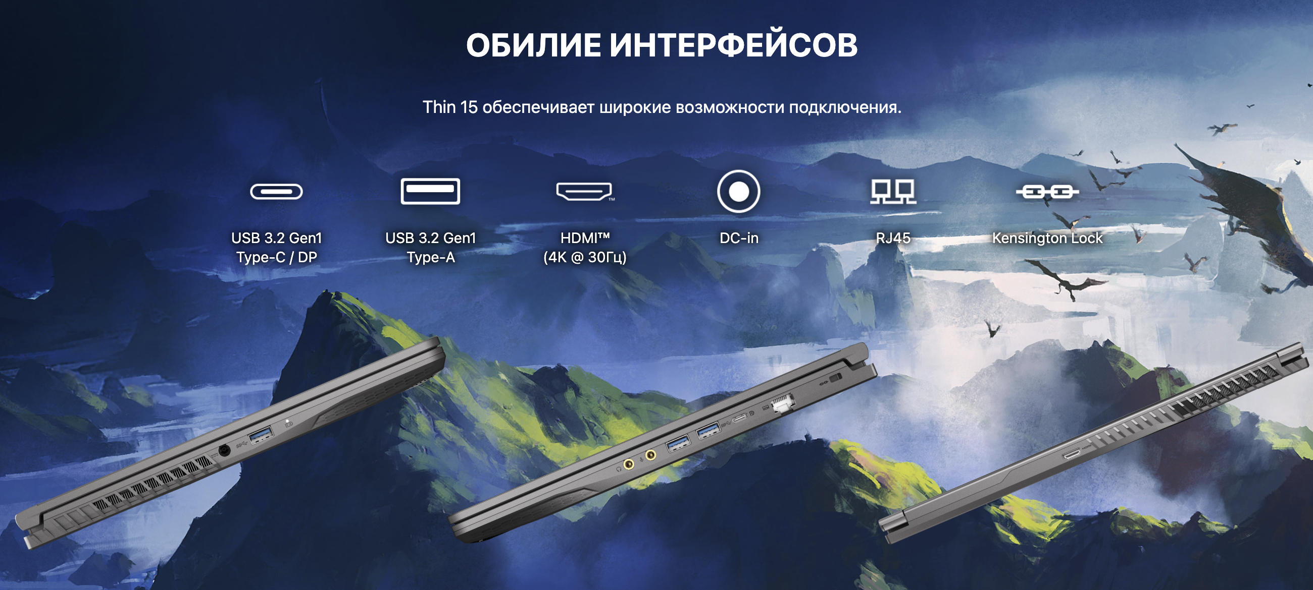 Мощные молнии бьют с неба, драконы парят над высокими горами – необъятные, полные чудес игровые миры ждут своих первооткрывателей, и именно для них предназначен ноутбук Thin 15. Его тончайший корпус теперь выполнен в новом космически-сером цвете, а внутри него – еще более мощные компоненты. Исследуйте виртуальные вселенные легко и свободно – вместе с ноутбуком Thin 15!