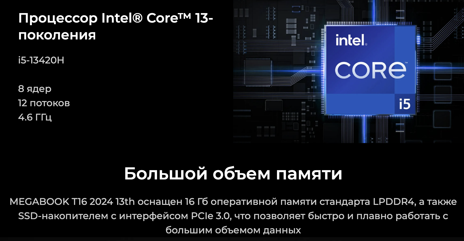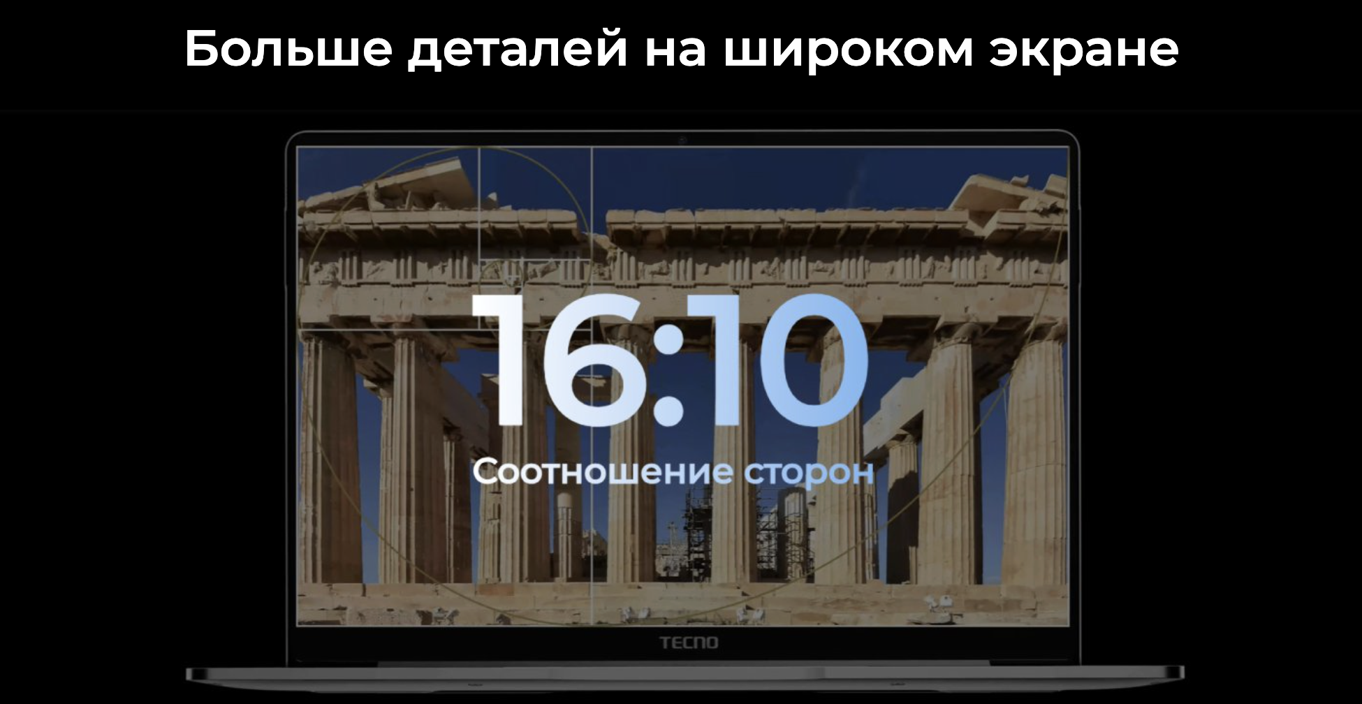 БрендTecno Диагональ экрана16.0 " Тип матрицы ноутбукаIPS Разрешение экрана1920 x 1200 Модель процессораCore i5 13420H Модель видеокартыUHD Graphics Объем оперативной памяти16 Гб