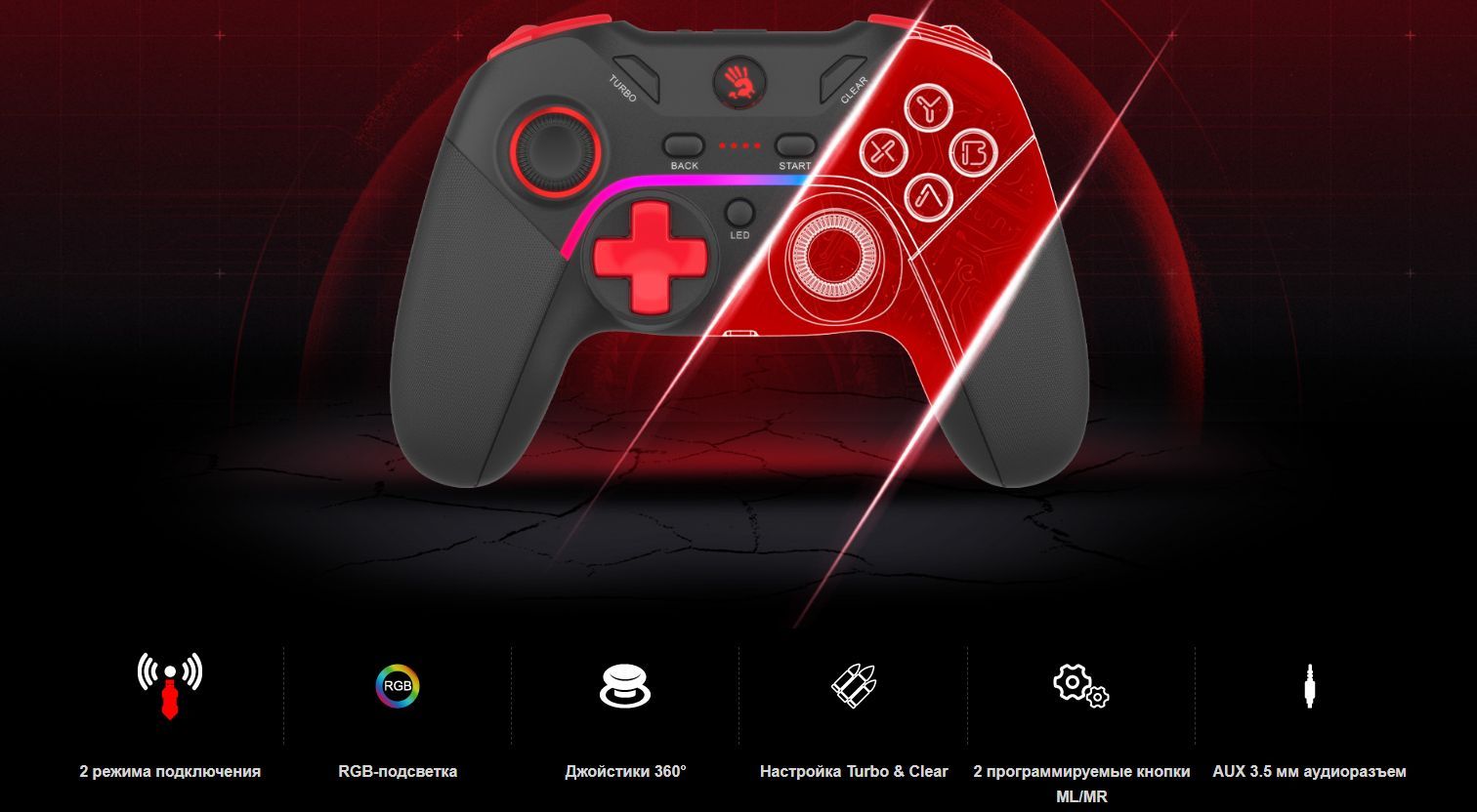 Характеристики Геймпад беспроводной/проводной A4Tech Bloody GPW70 Sports черный