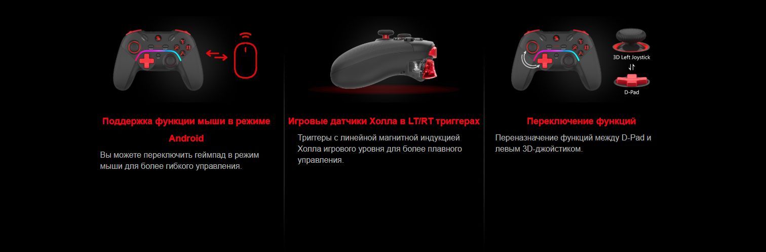Сердцем точности этого геймпада являются стики с датчиками Холла. В отличие от традиционных аналоговых стиков, они используют магнитные поля для считывания движений, что полностью исключает проблему дрейфа и обеспечивает беспрецедентную долговечность.