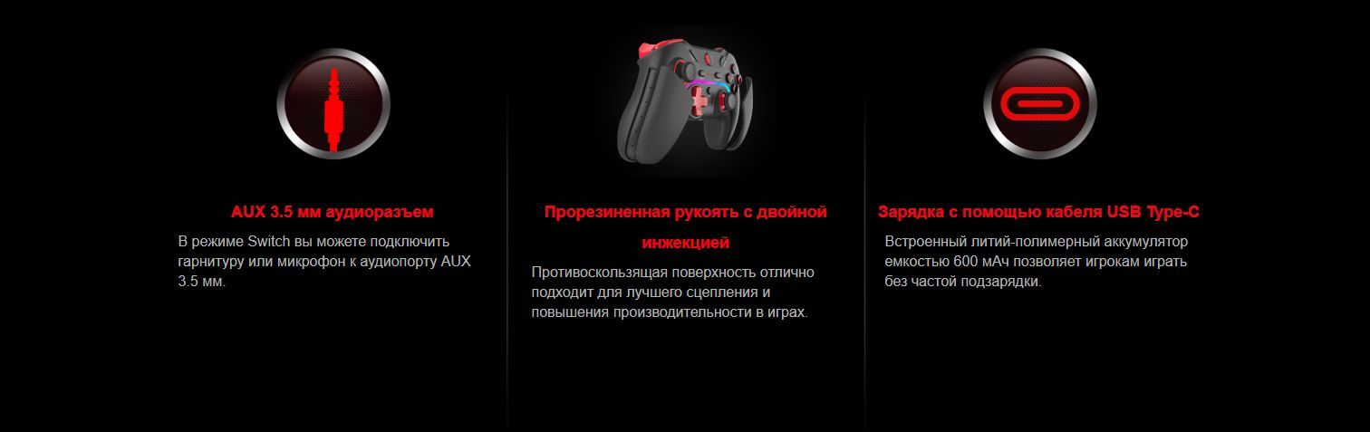 Геймпад создает полное погружение благодаря мощной виброотдаче, которая откликается на события в игре, и динамической подсветке, задающей нужное настроение.
