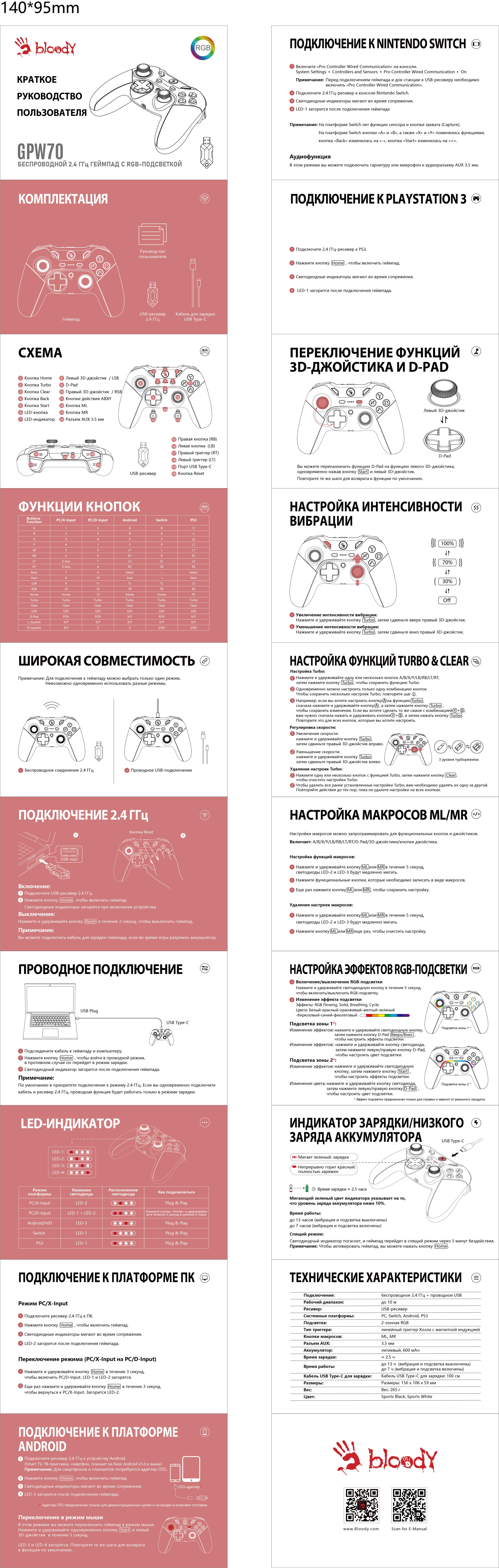 Благодаря широкой совместимости с ПК, Android, PlayStation 3 и Nintendo Switch, Bloody GPW70 это ваш единый универсальный контроллер для всей игровой экосистемы.