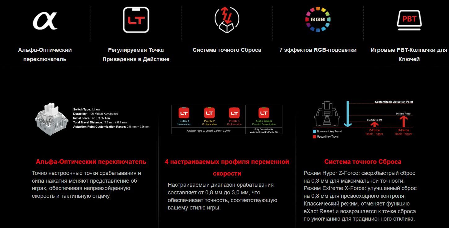 Модель имеет RGB подсветку клавиш, цвет которой можно легко поменять.