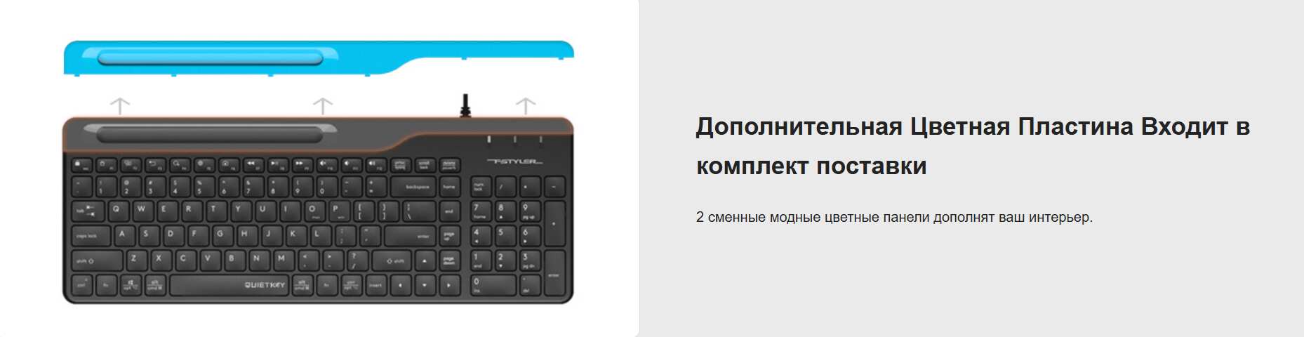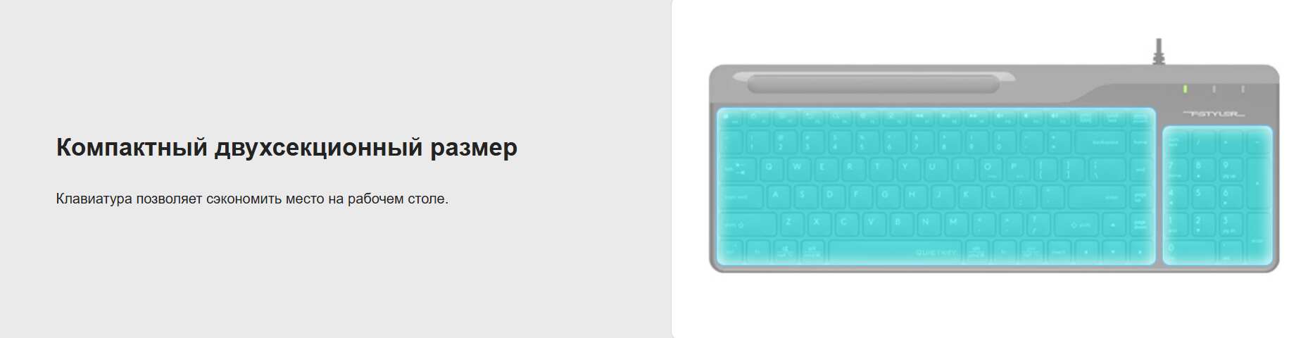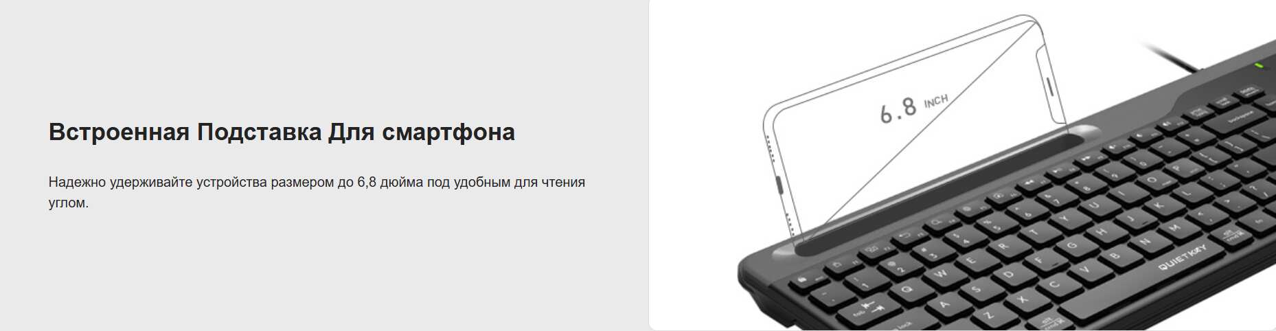 Закругленная форма клавиш способствует снижению усталости во время продолжительной работы. Над клавишами в A4Tech Fstyler FK25 предусмотрено специальное углубление для размещения мобильного устройства.