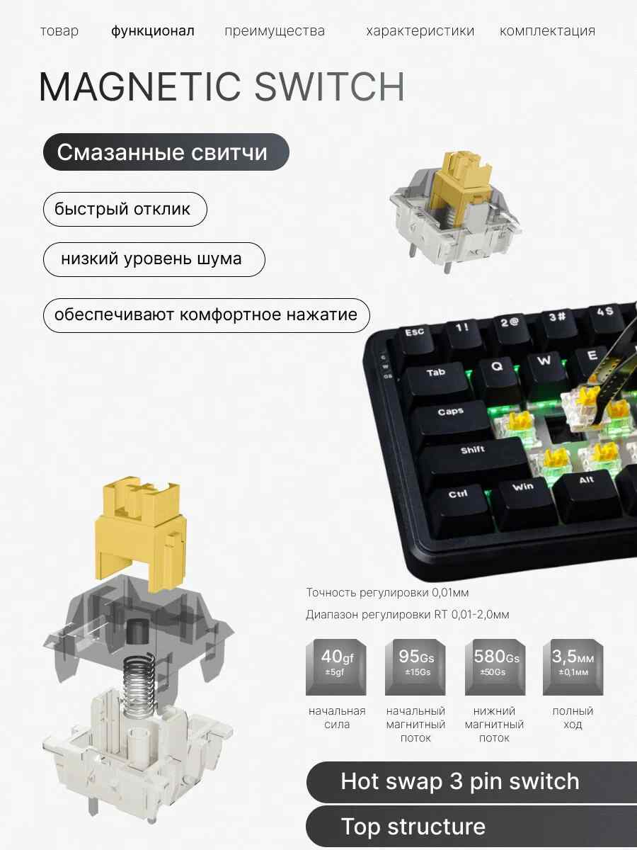 Вы сможете наслаждаться каждым нажатием благодаря надежным магнитным свитчам.