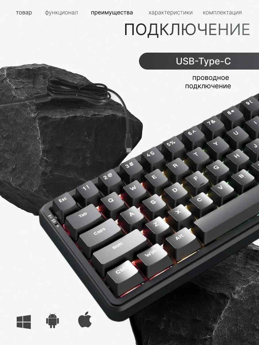 Эта клавиатура оснащена механическими ключами, обеспечивающими отличную тактильную обратную связь и долговечность.