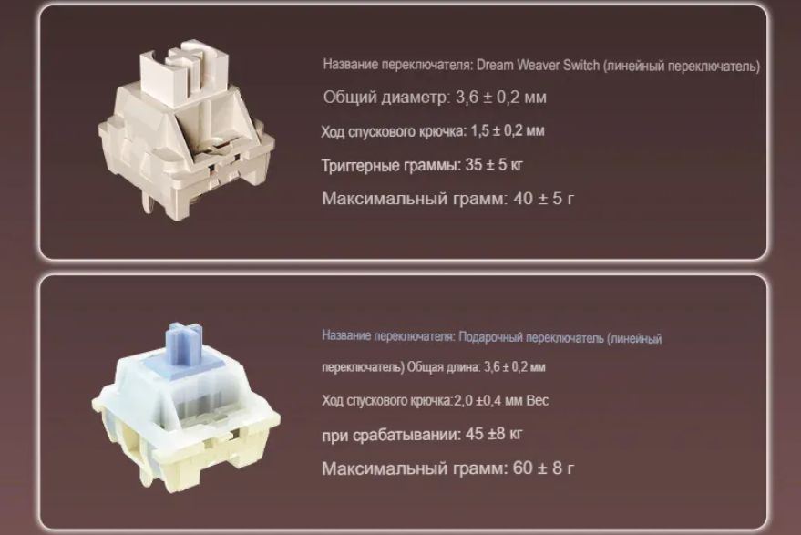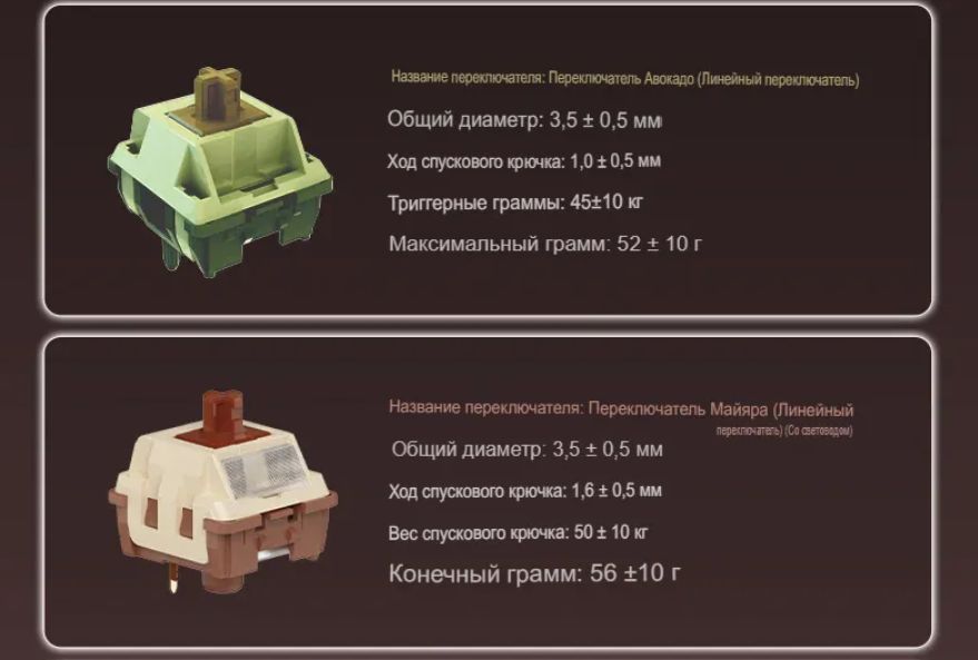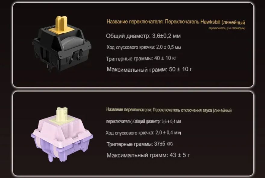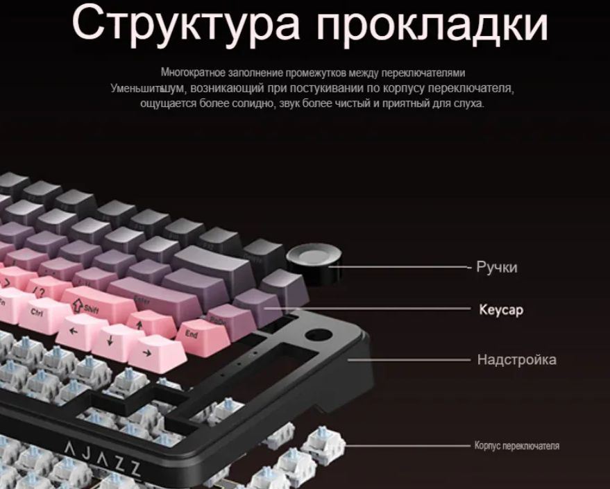 Ajazz AK820MAX оснащена механическими переключателями, свитчами, обеспечивающими мгновенный отклик и надежную работу. Благодаря уверенному и плавному ходу клавиш вы сможете достичь максимальной производительности как в играх, так и в работе.