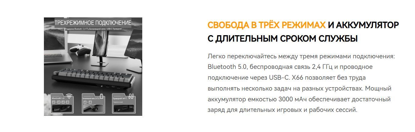 • Подключение: Беспроводная связь 2,4 ГГц/Bluetooth 5.0/проводное подключение USB-C