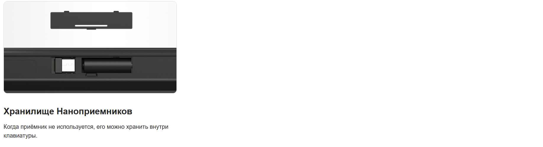 Оба устройства работают по радиоканалу с USB-приемником, который обеспечивает стабильное соединение на расстоянии до 10 метров.