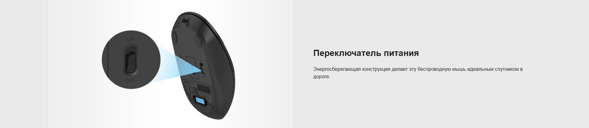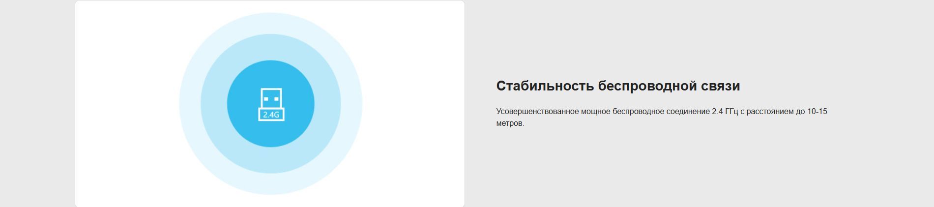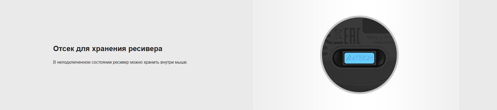 Подключение мыши к устройствам осуществляется по радиоканалу 2.4 ГГц в радиусе до 15 м. Для этого используется USB-ресивер.