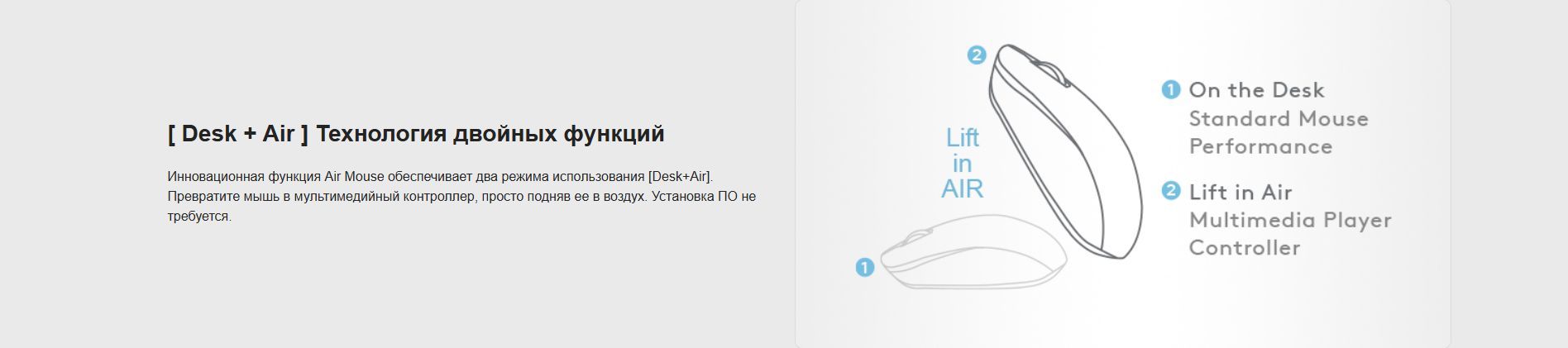 Технология двойных функций предусматривает возможность использовать мышь в качестве мультимедийного контроллера. В этом случае мышью будет удобно управлять приложениями на смарт-телевизоре.