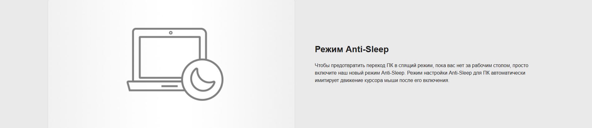 • Особенности: Возможность установки режима Anti-Sleep для ПК