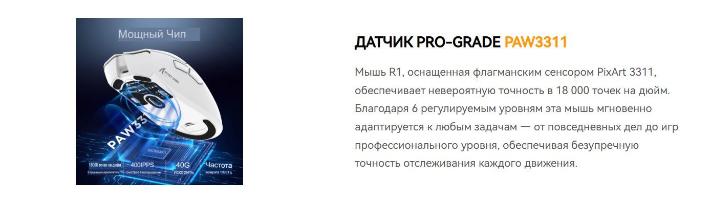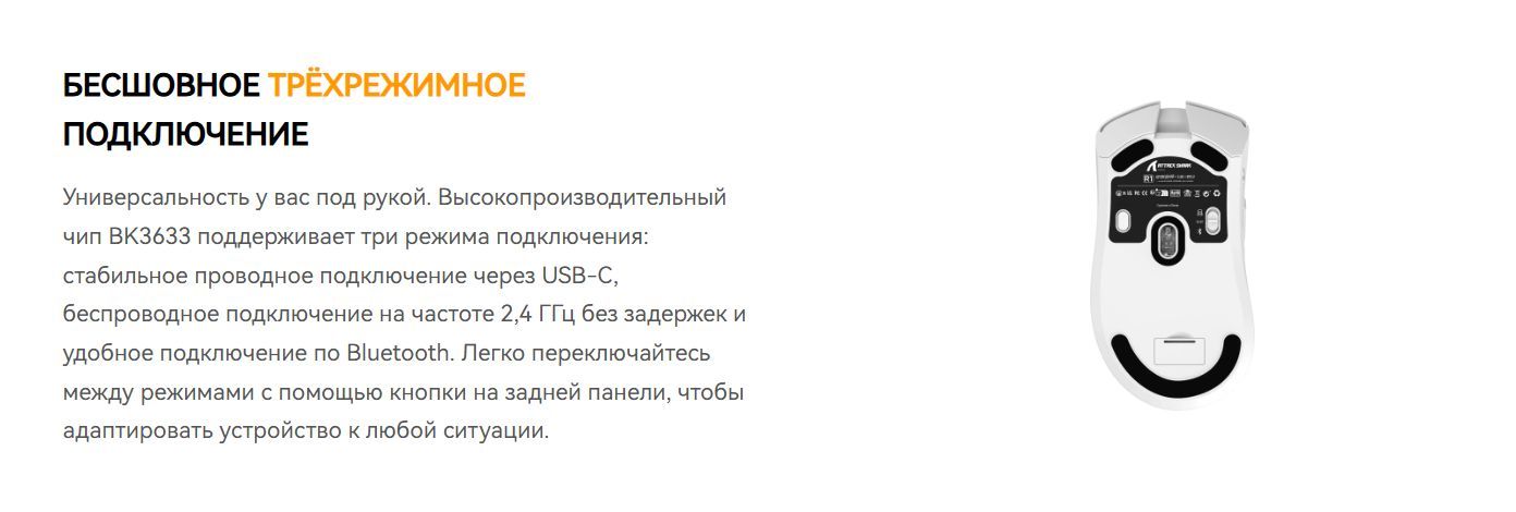 Характеристики Мышь беспроводная/проводная Attack Shark R1 18000 dpi черный