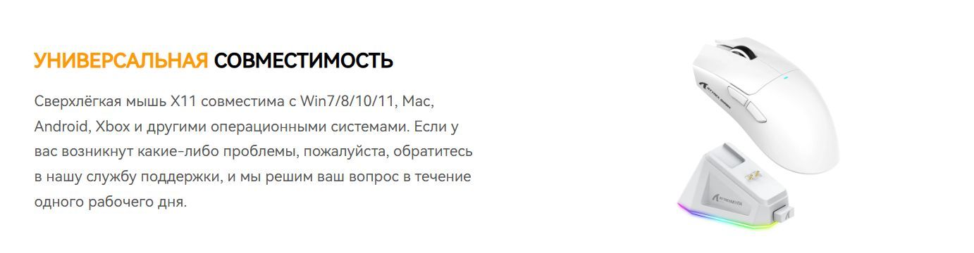 Характеристики Мышь беспроводная/проводная Attack Shark X11 22000 dpi белый