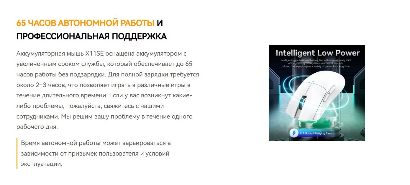 • Время автономной работы 65 часов