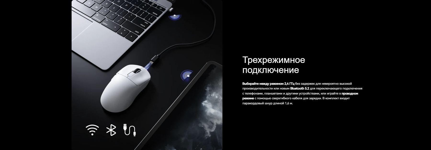- Разъем проводного подключения к мышке: USB Type-C