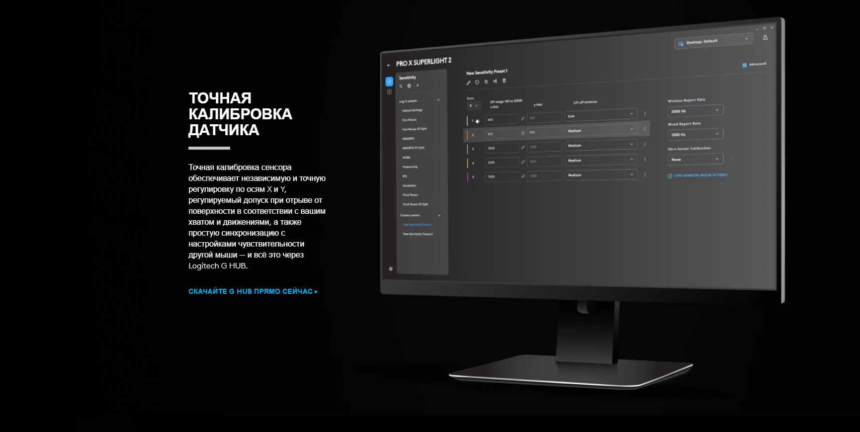 Сердцем Logitech G Pro X Superlight 2 является оптический сенсор с невероятным разрешением до 44000 DPI, который обеспечивает исключительную точность и плавность курсора. Благодаря этому вы сможете выполнять молниеносные движения и тонкую настройку прицела, идеально подходящую для шутеров, стратегий и других жанров. Высокая скорость отклика и отсутствие фильтрации сигнала делают каждое ваше действие мгновенным и предсказуемым.