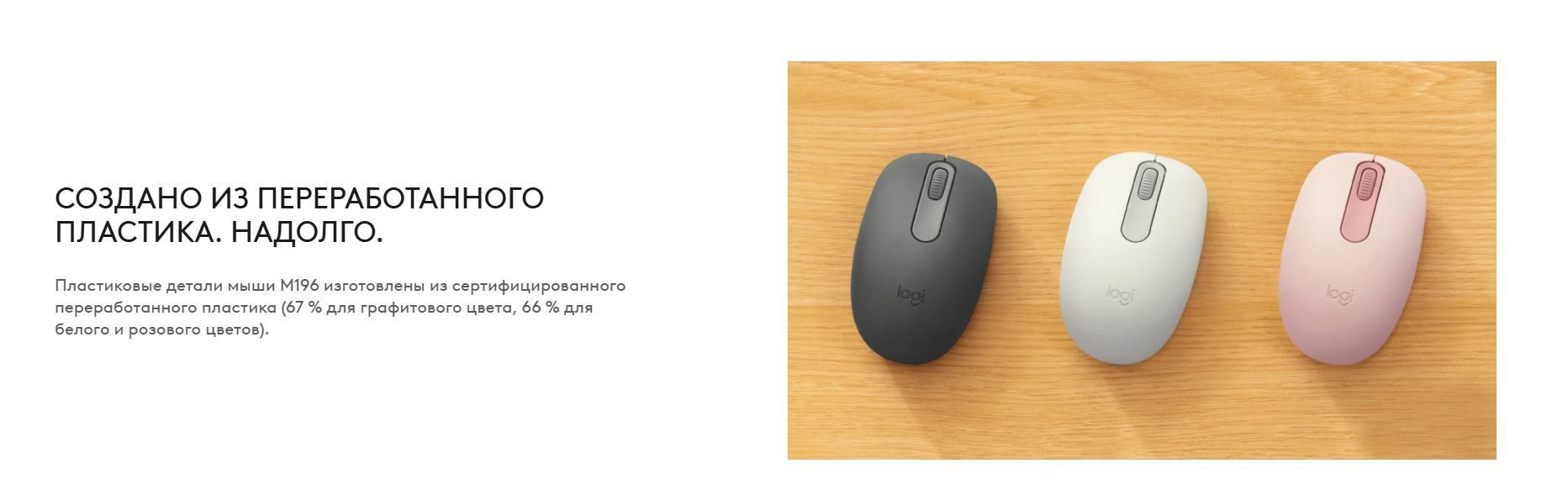 Познакомьтесь с M196 надёжной Bluetooth-мышью, которая освобождает ваше рабочее пространство, подключается за считаные секунды и изготовлена из переработанного пластика.