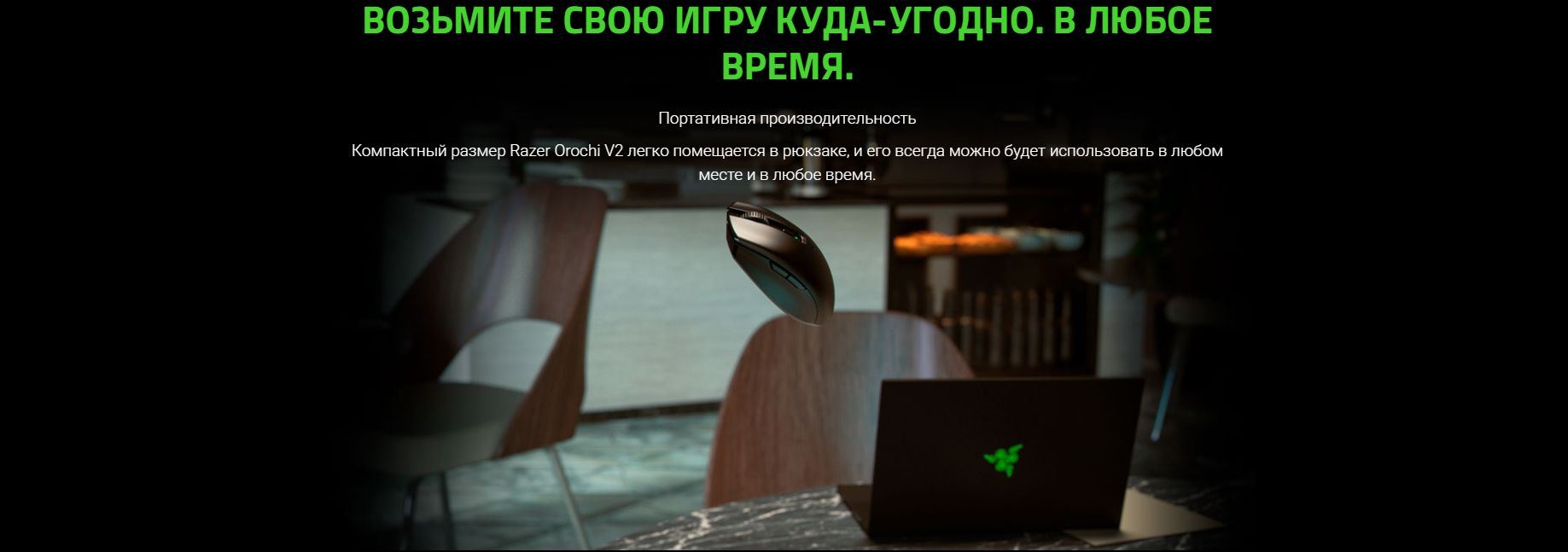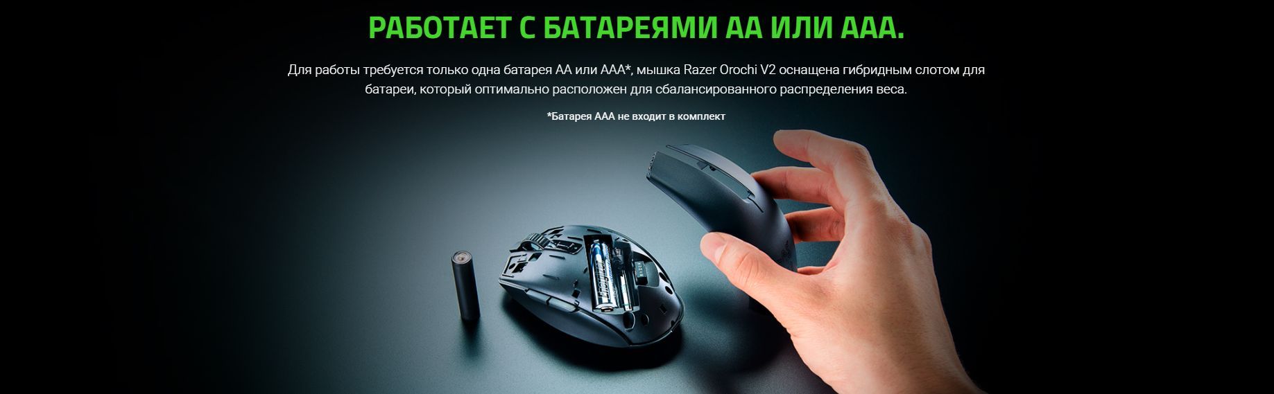 Внутри мыши беспроводной Razer Orochi V2 спрятан оптический светодиодный сенсор Razer 5G.