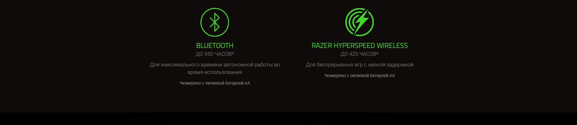 БрендRazer ТехнологияОптическая Интерфейс подключенияBluetooth, Радиоканал Тип соединенияБеспроводная Максимальное разрешение сенсора18000 dpi Количество кнопок6 Колесо прокруткиЕсть Радиус действия10 м ПитаниеОт батареек AA или AAA Особенности мышкиКомпактная, Матовое покрытие, Подставка под большой палец, Частота 1000 Гц, RAZER HYPERSPEED, Кнопка смены разрешения, Боковые кнопки навигации «Вперёд» и «Назад», Программируемые кнопки, Для правой руки, Память для хранения профилей настроек