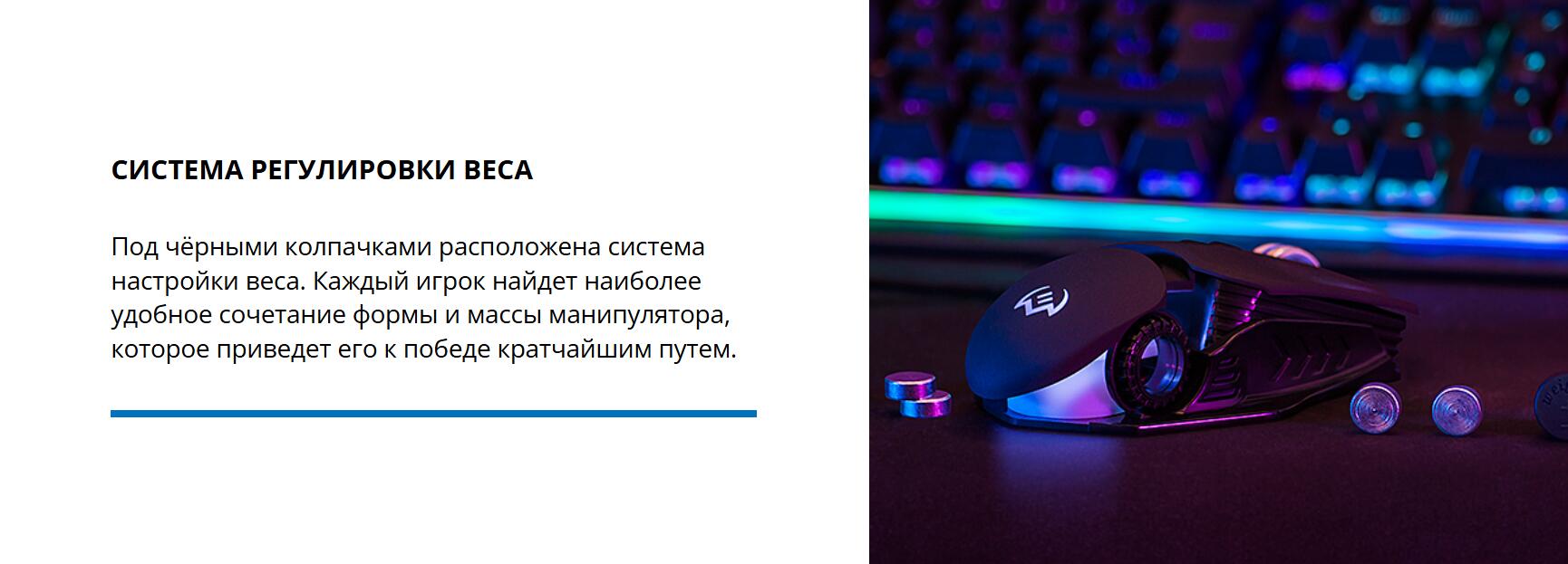 Регулируемый вес позволяет подстроиться под требования и привычки владельца и обеспечить необходимый уровень комфорта во время многочасовых сессий и безупречно точное позиционирование.
