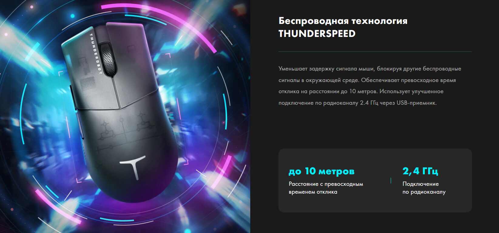 Характеристики Мышь беспроводная Thunderobot ML903 Black Mist 26000 dpi черный