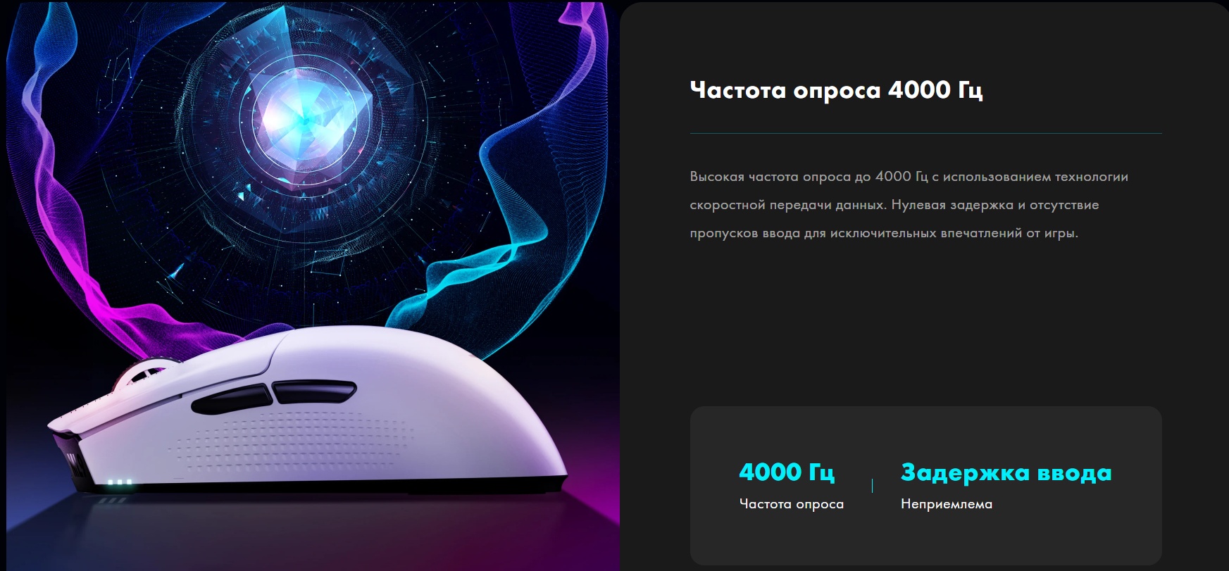 Оптическое разрешение 26000 dpi, обеспечивает быстрое и плавное перемещение курсора на экране монитора при минимальном движении рукой.