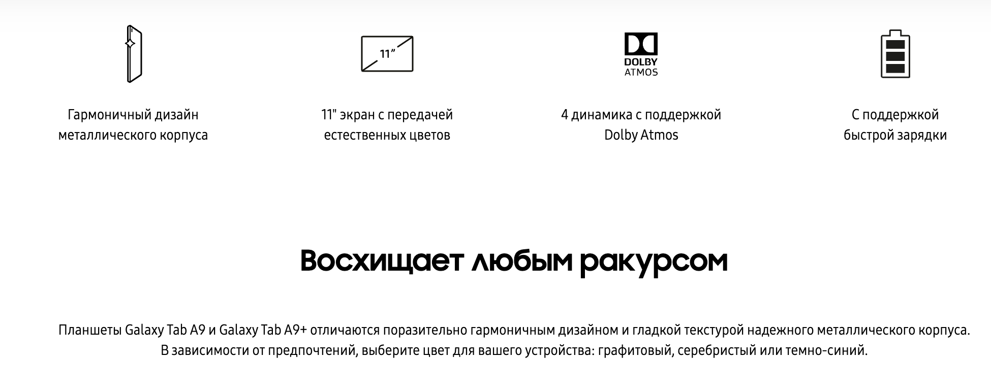 Характеристики Планшет Samsung Galaxy Tab A9 SM-X110 8.7" 8Gb/128Gb Wi-Fi темно-синий (SM-X110NDBECAU)