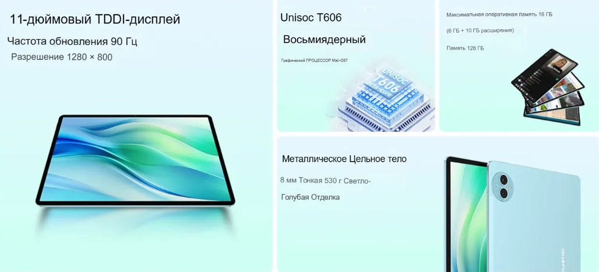 Планшет Teclast P50 Wi-Fi/Bluetooth/3G/4G/LTE 10.95 " 8/128Гб голубой