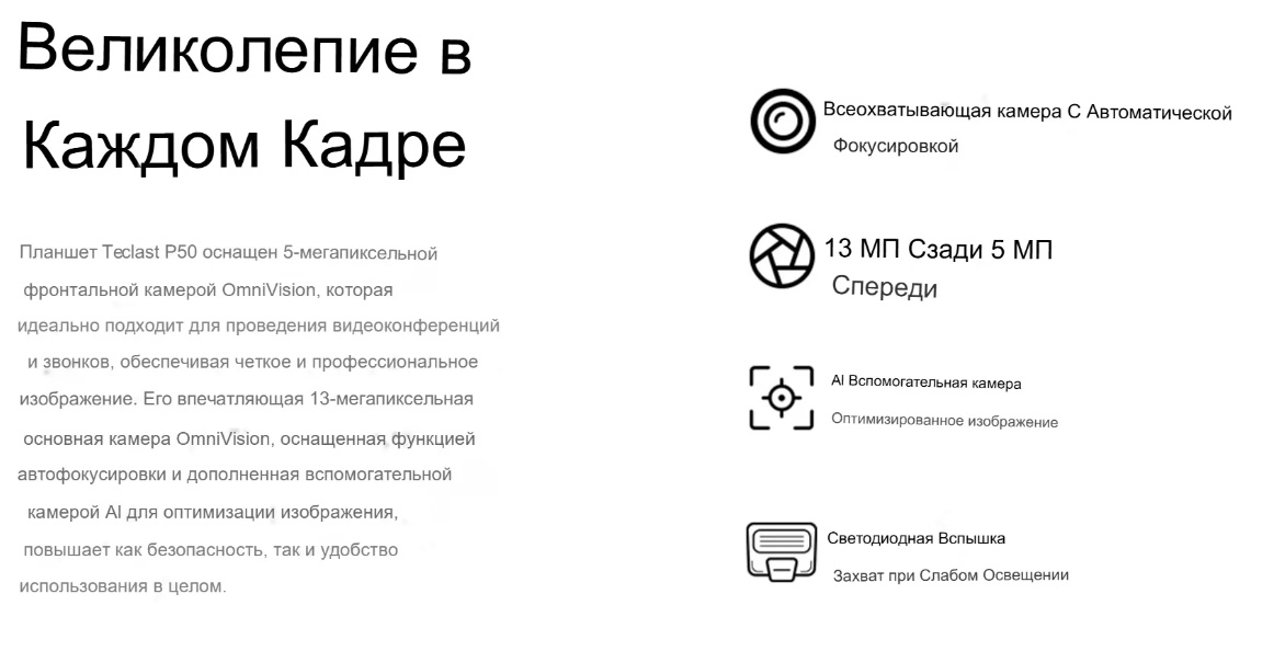 Графическую составляющую берет на себя современный видеоускоритель, который обеспечивает стабильную картинку в играх и приложениях. Важно отметить, что планшет работает на знакомой и понятной операционной системе, что делает его интуитивно понятным с первой же минуты использования.