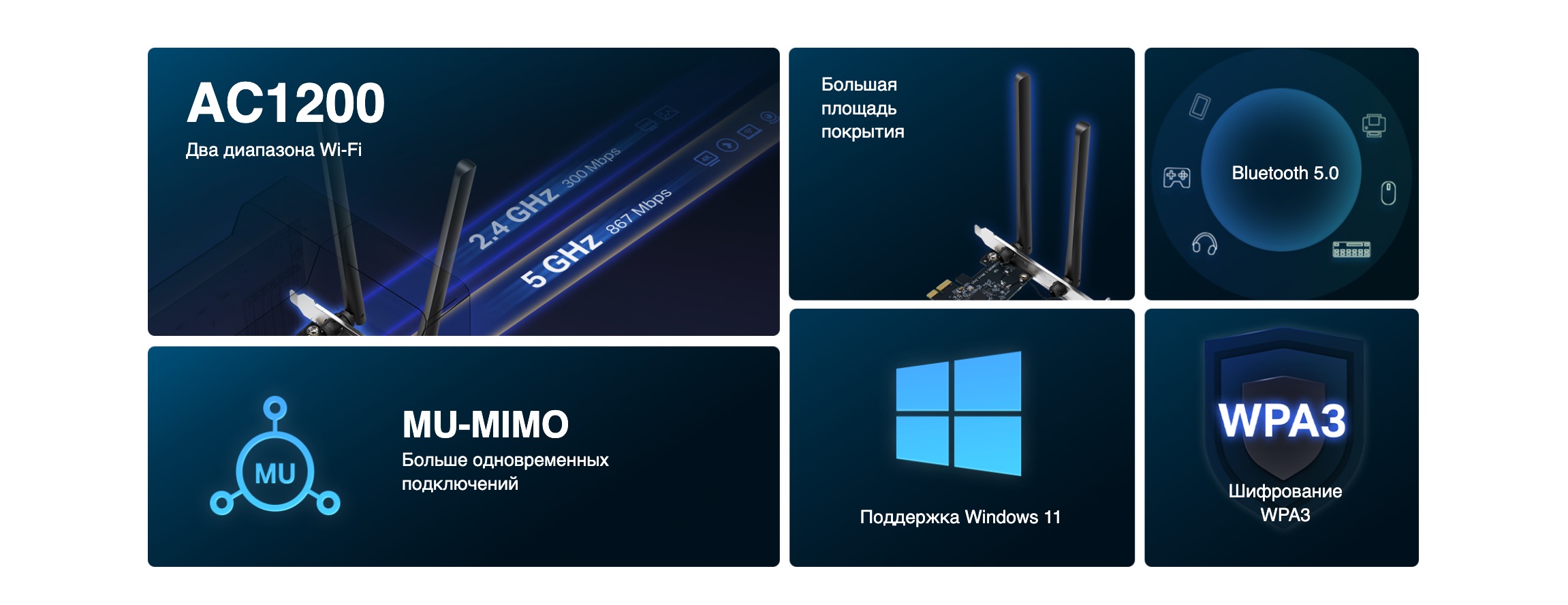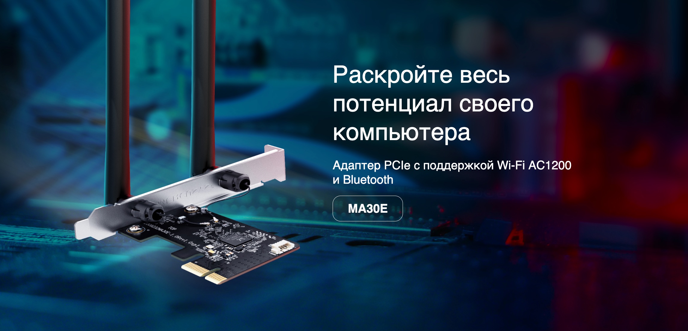 Адаптер Mercusys PCIe с поддержкой Wi‑Fi AC1200 и Bluetooth 5.0 (MA30E)