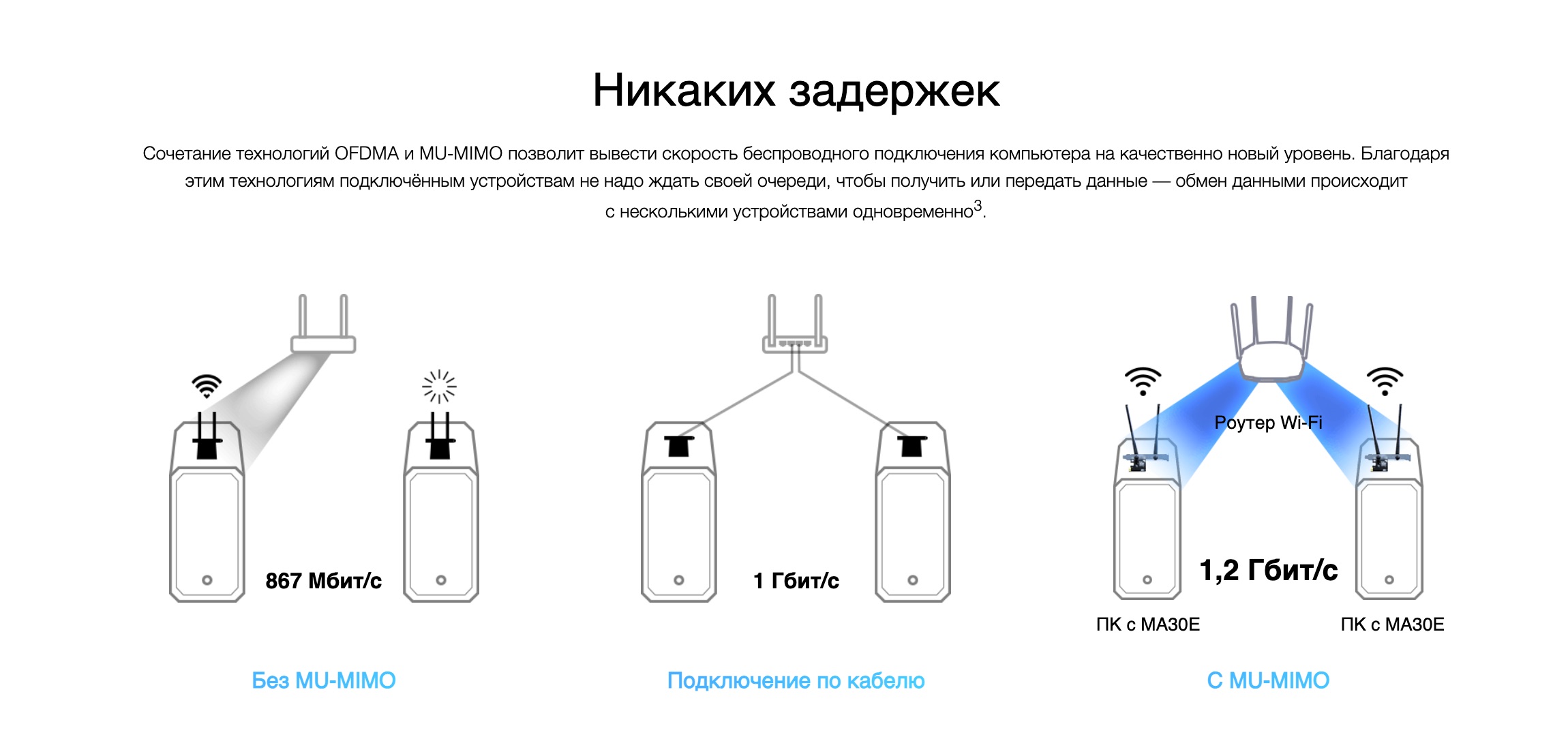 - Технология MU-MIMO: позволяет обмениваться данными со множеством устройств одновременно и снизить нагрузку на сеть3.
