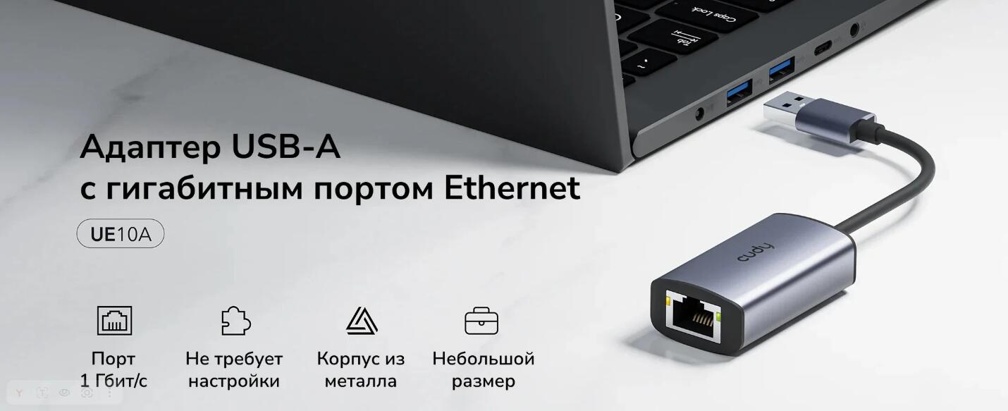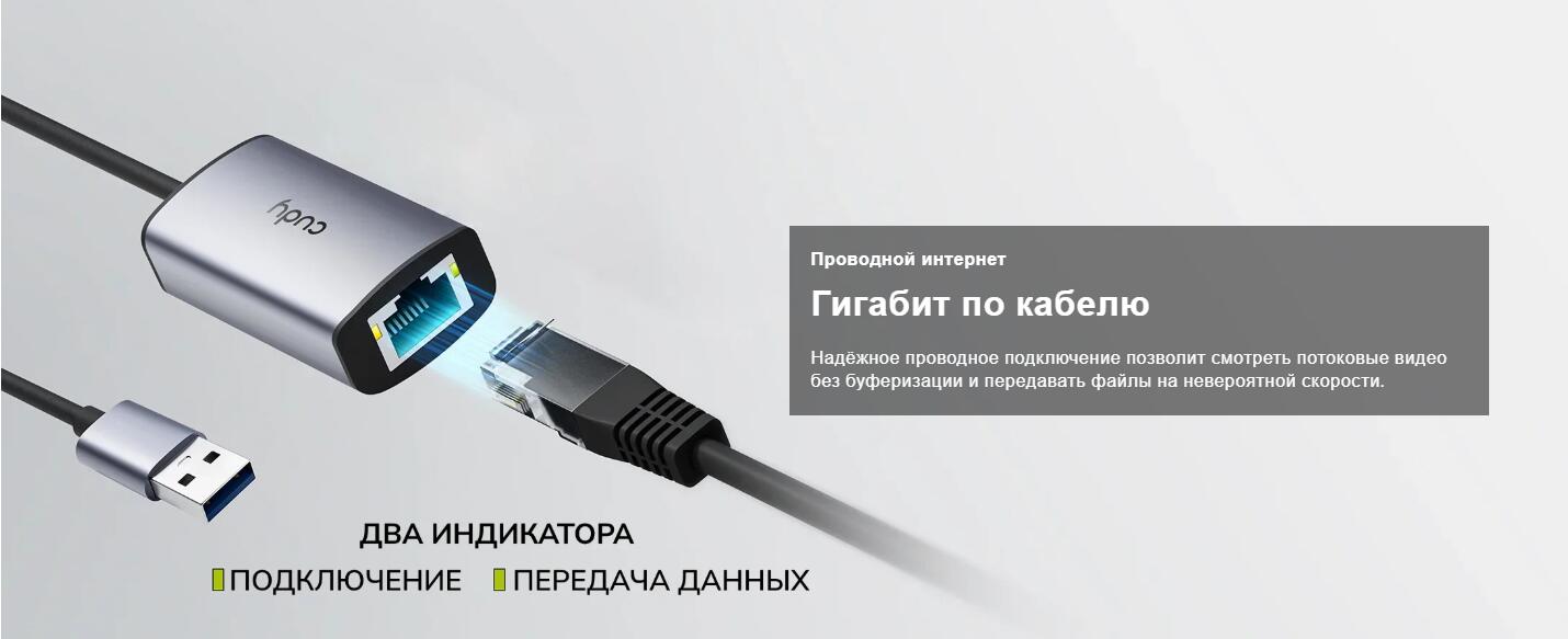 Cudy UE10A это современный гигабитный сетевой адаптер, который подключается через универсальный порт USB 3.0.