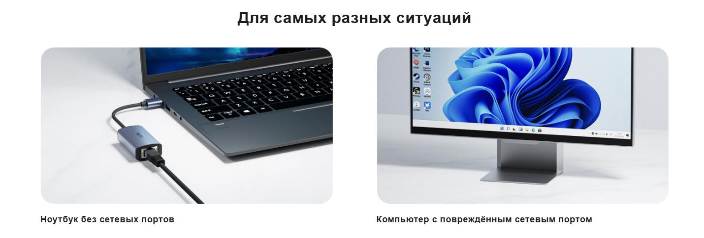 Это идеальное решение для устройств, не оснащенных встроенным Ethernet-портом, или для тех случаев, когда требуется максимальная производительность, превосходящая возможности даже самого быстрого Wi-Fi.