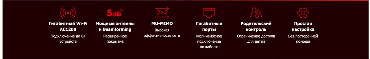 • Гигабитный Wi-Fi AC1200 — наслаждайтесь домашними развлечениями без задержек на скорости до 867 Мбит/с на 5 ГГц и до 300 Мбит/с на 2,4 ГГц