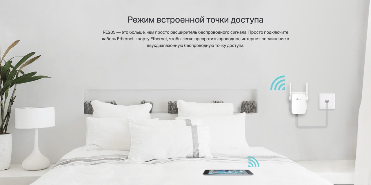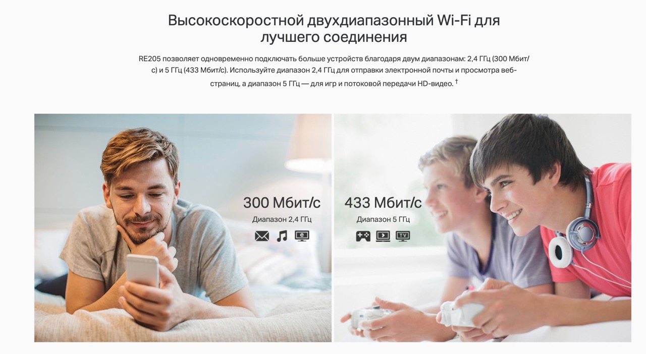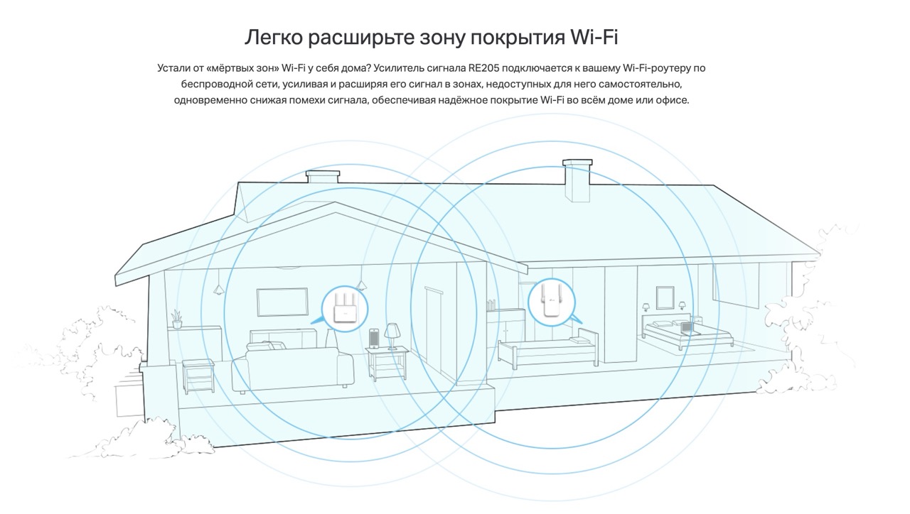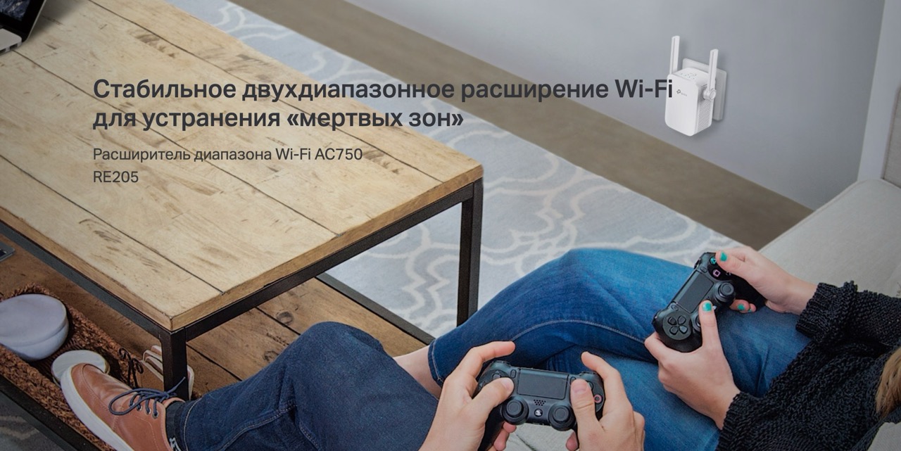 Устраняет «мертвые зоны» Wi-Fi благодаря мощному расширению Wi-Fi с общей скоростью до 750 Мбит/с