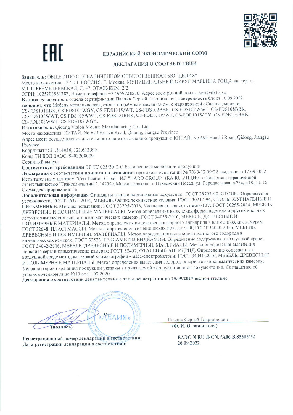 Основные характеристики стола Cactus CS-FDS102WWT: