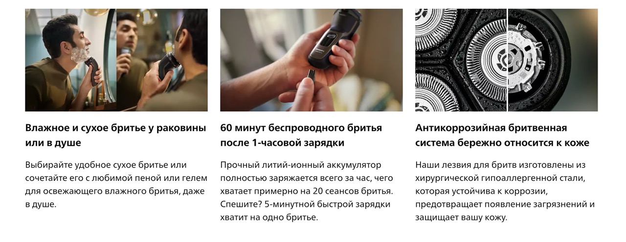 Электробритва Philips Shaver 3000 Series Wet & Dry обеспечивает комфортное и чистое бритье даже для чувствительной кожи. Поворотные гибкие головки 5D, 27 самозатачивающихся лезвий PowerCut, а также возможность влажного и сухого бритья гарантируют превосходный и надежный результат каждый раз.