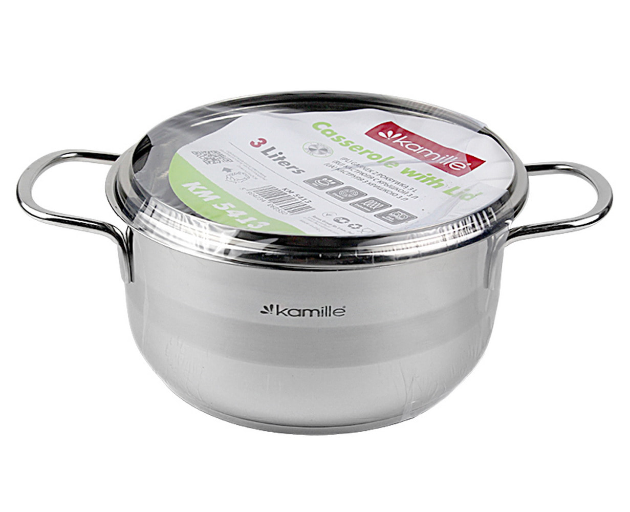 Кастрюля из нержавеющей стали Kamille KM 5413 — изготовлена из качественных материалов с использованием современных технологий производства. Посуда имеет прекрасный внешний вид, оснащена капсульным дном и отличается высокой прочностью и долговечностью в использовании. Крепление ручек выполнено методом точечной сварки, внешне это выглядит не очень надежно, но такое впечатление обманчиво, на самом деле такой метод крепления – лучший вариант. Такие ручки надежны, они выдерживают трехкратный вес наполненной посуды, а главное – они практически не нагреваются при готовке. Благодаря высокому качеству, кастрюля будет служить Вам очень долго и принесет только удовольствие от использования.
