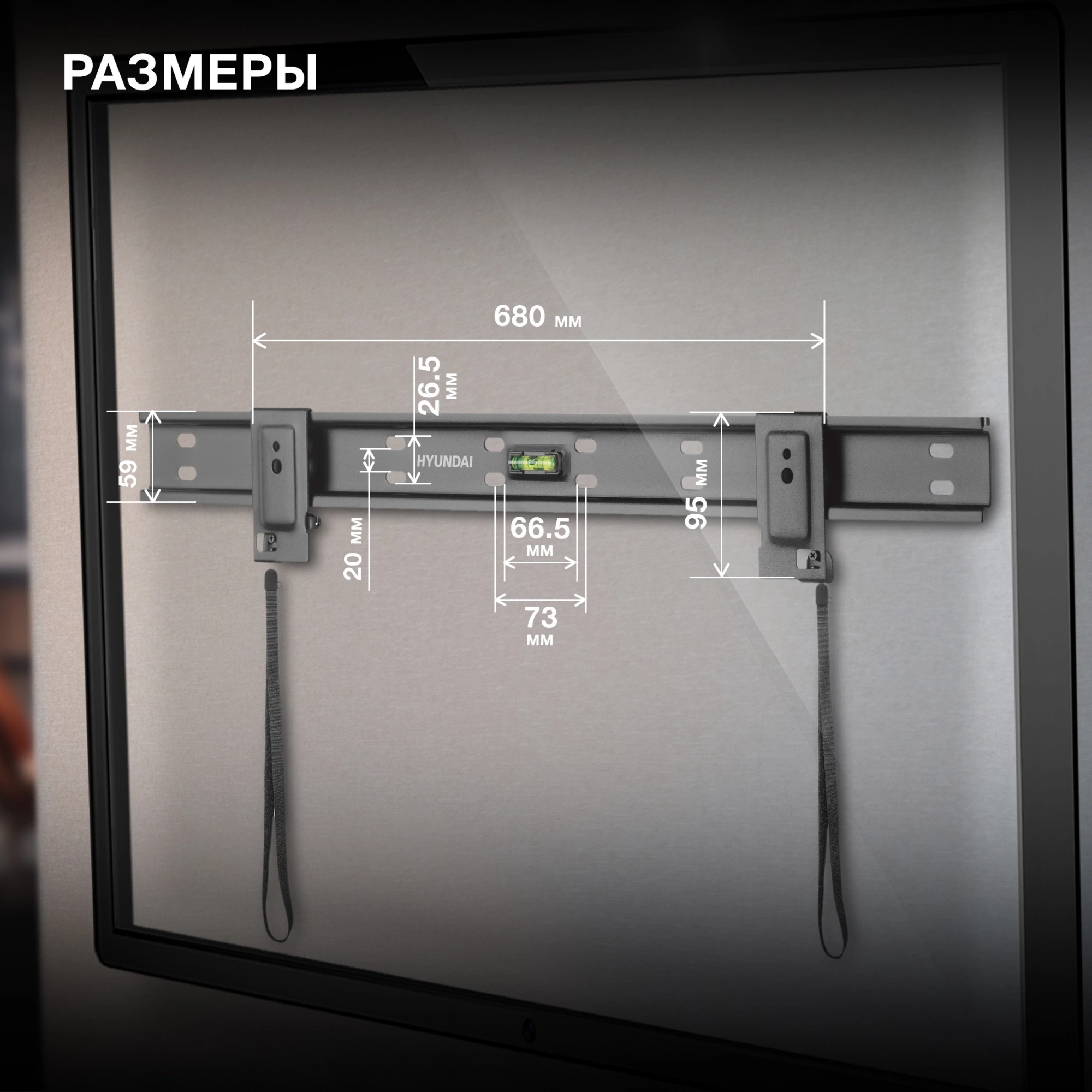 БрендHyundai Тип VESA400*300, 200x300, 500х400, 200x200, 300x200, 300x300, 400х200, 400x300, 400х400, 600x400 Тип установкиНастенный Максимальный вес телевизора50 кг Минимальная диагональ телевизора37 Максимальная диагональ телевизора75 " РегулировкаФиксированный