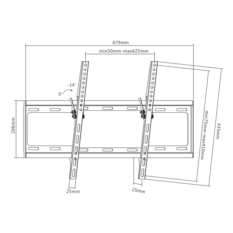 Угол наклона: 0°~-14°
