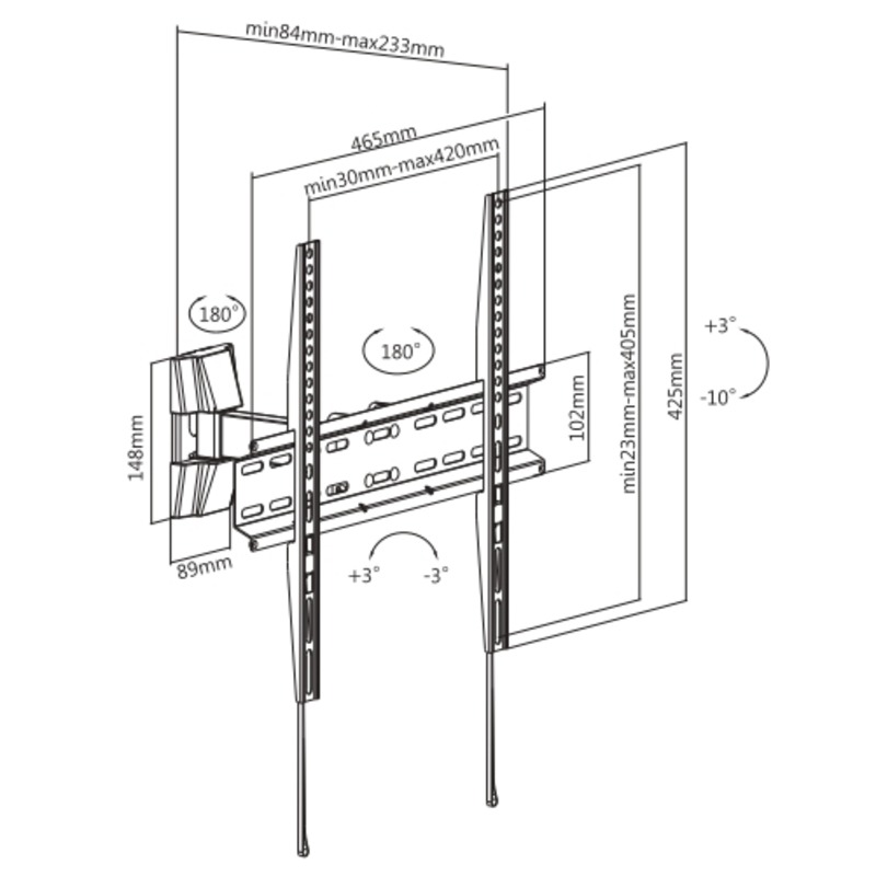 Расстояние от стены: 84-233 мм