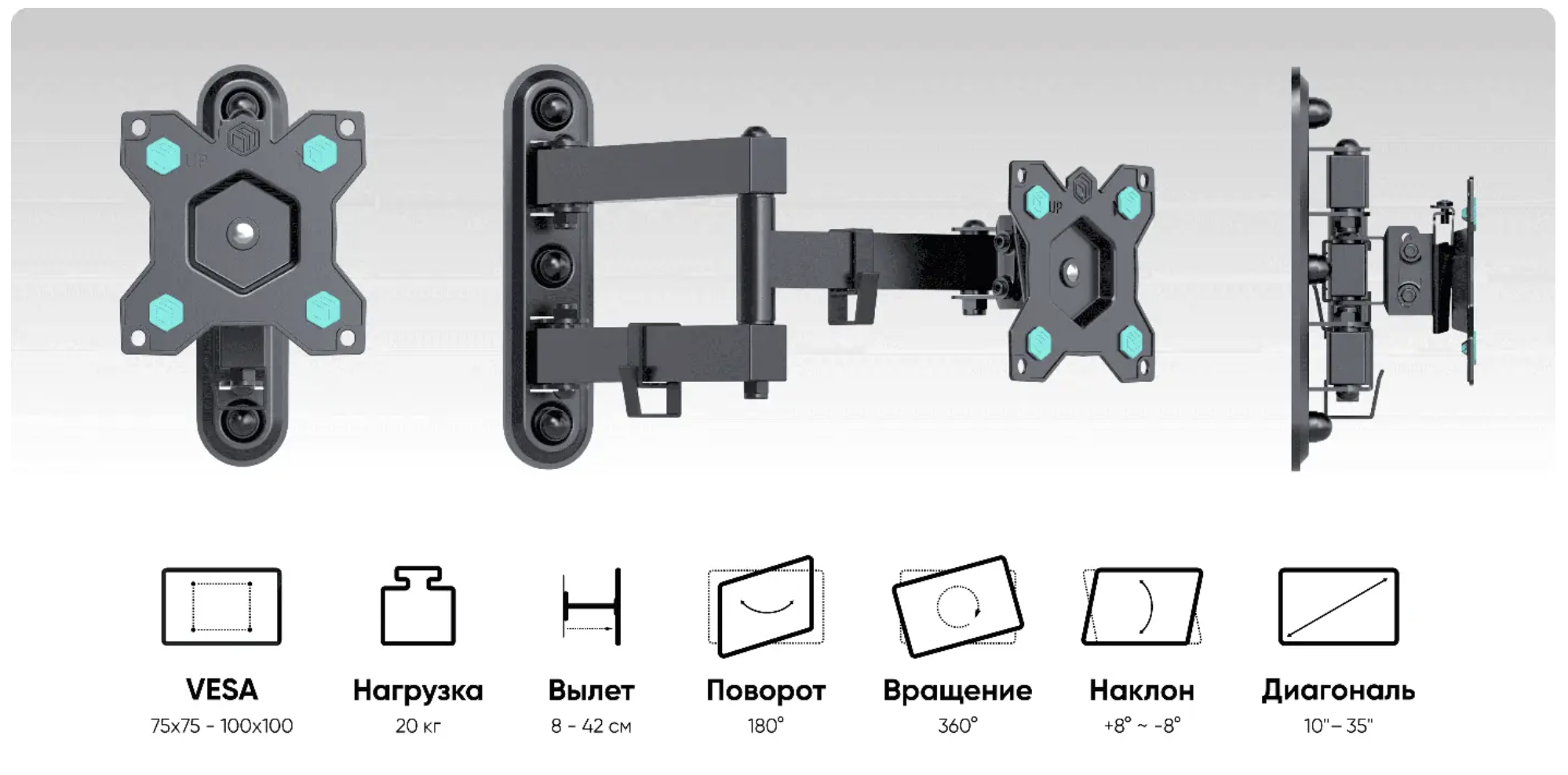 Кронштейн ONKRON R4 10"-32" наклонно-поворотный черный